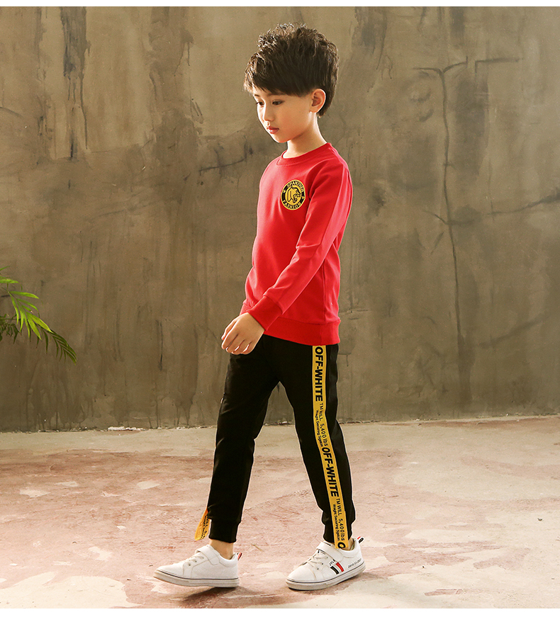 На мальчика длинный рукав комплект детское Осень 2018 года новая коллекция В большом количестве детские демисезонный стиль мужской ребенок корейская версия толстовка два наборы