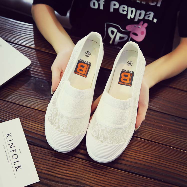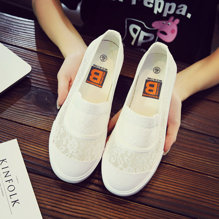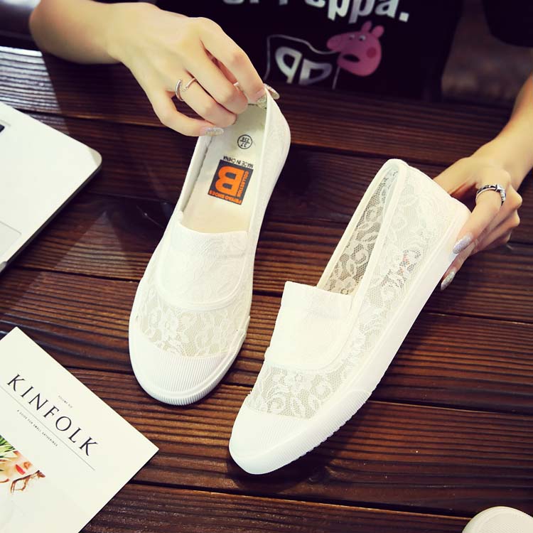 Весной Обувь перья ленивый белый на плоской подошве Ткань обувь удобно воздухопроницаемый Медсестра Обувь сетка кружева белый Обувь