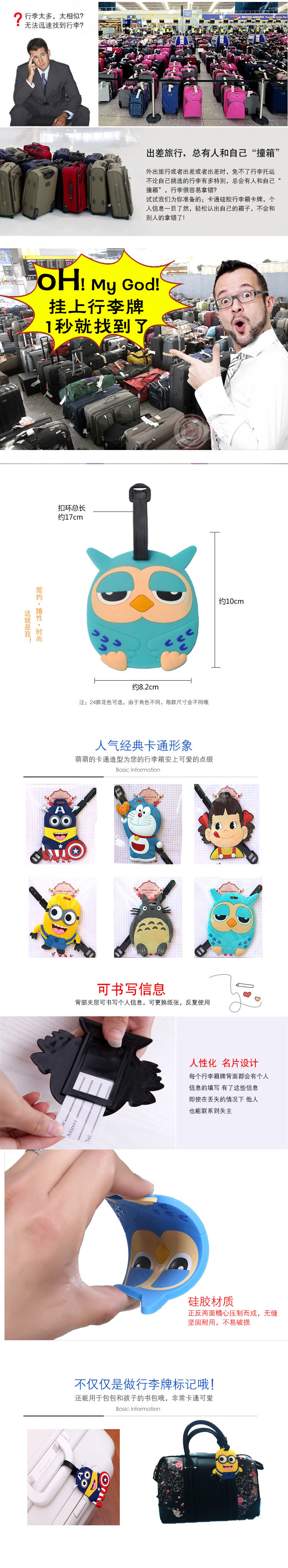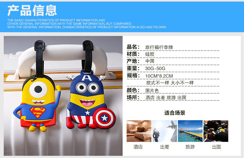 Багажная бирка чемодан доставка вне страны посадка карт троллейбуса милый мультфильм силиконовый креативный стандартный Список знаков