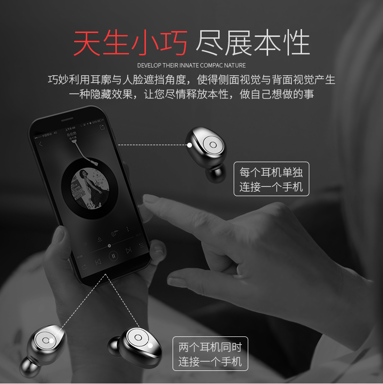 Amoi / лето новый F9 без Линия двойные уши супер маленькие мини синий Ингистрация наушников для наушников для зубов