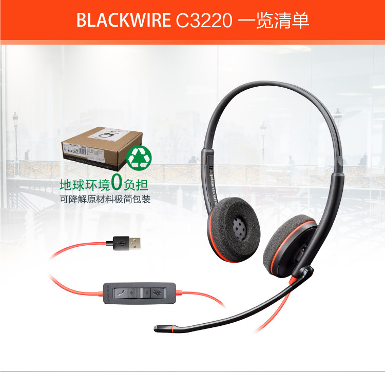 Игривый(Plantronics)C3220 USB -гарнитура контроль гарнитуры Hearset Hearset/Mincophone снижения шума