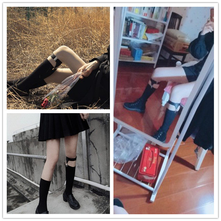 Панк-орнамент для ног охват ноги в бедре Носки с кольцами с застежкой Носки с зажимом для ног, японская подвязка с двойным зажимом jk средние Подвязки