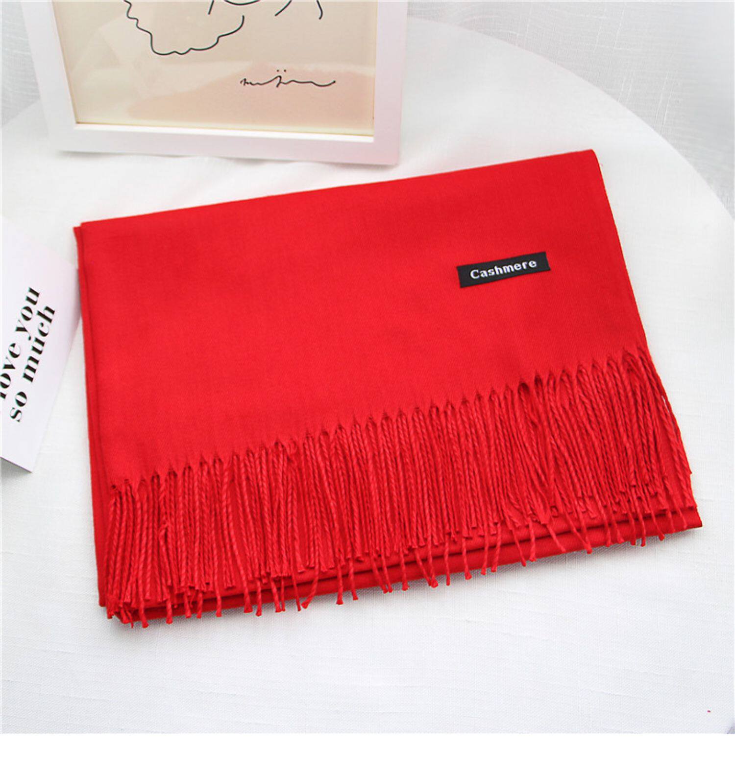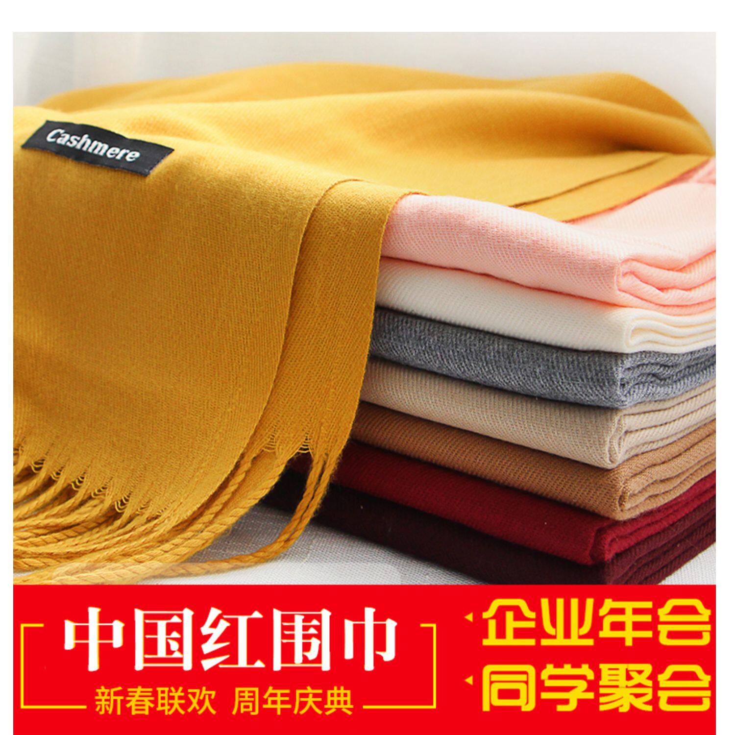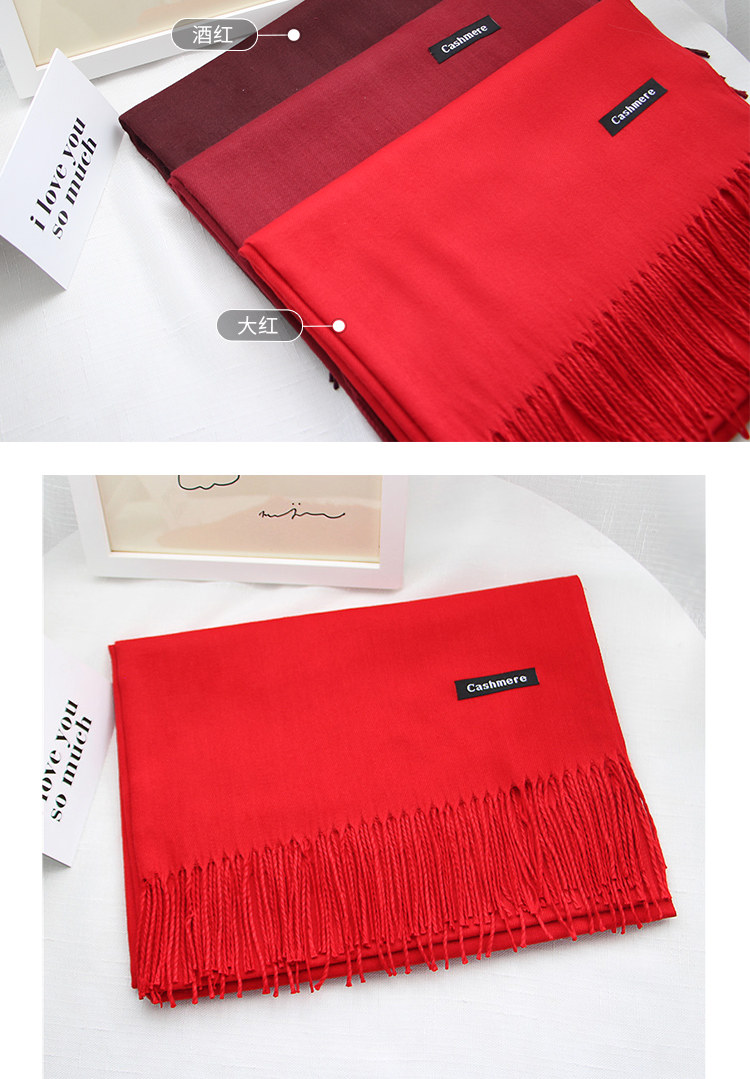 Осень-зима Дикий копия замша Сплошной цвет накидка Ежегодное собрание насыщенно-красный новый Китай красный шарф Индивидуальный логотип вышивка