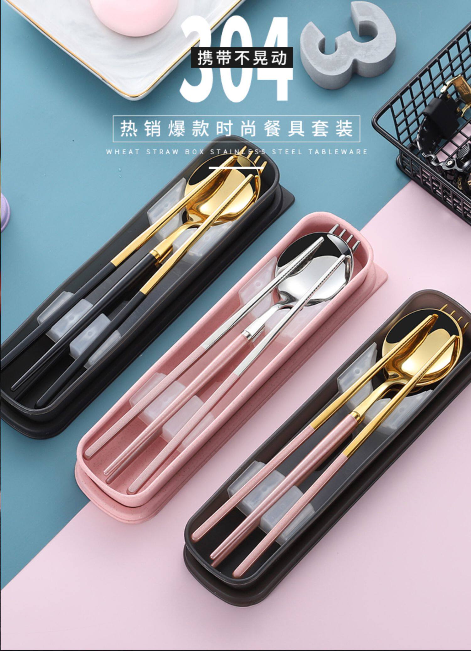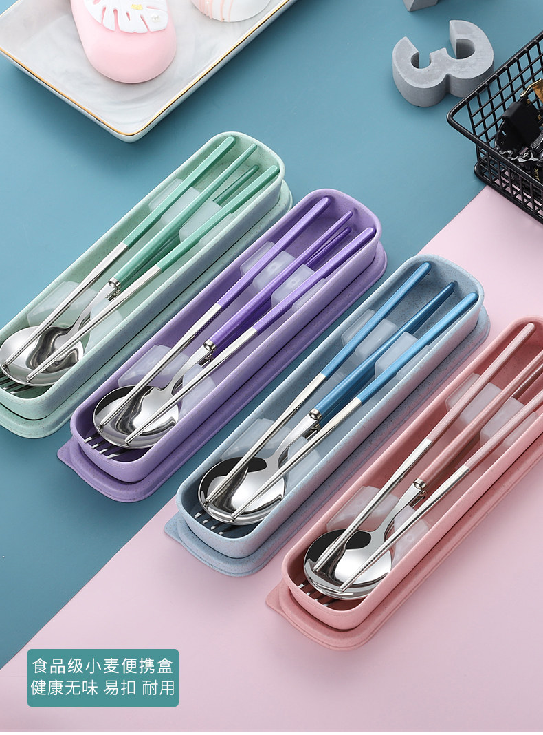 Портативные палочки для еды ложка комплект детские Посуда 3 накладки Вилка из нержавеющей стали один Студенческая коробка людей верх Одноклассник