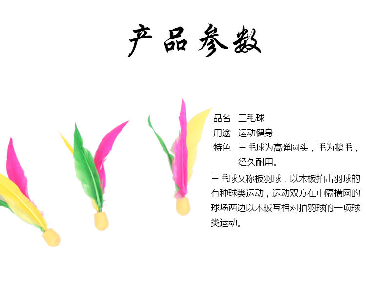 Введение в ракетку Sanmao: Согласно записям, мяч развился из оригинального бадминтона, поэтому игровой процесс похож на бадминтон. Он прочный и долговечный, и цена Недорого, при использовании меньше зависит от времени и места, без Весной, летом, осенью, зимой крытые и открытые площадки могут быть любого размера.