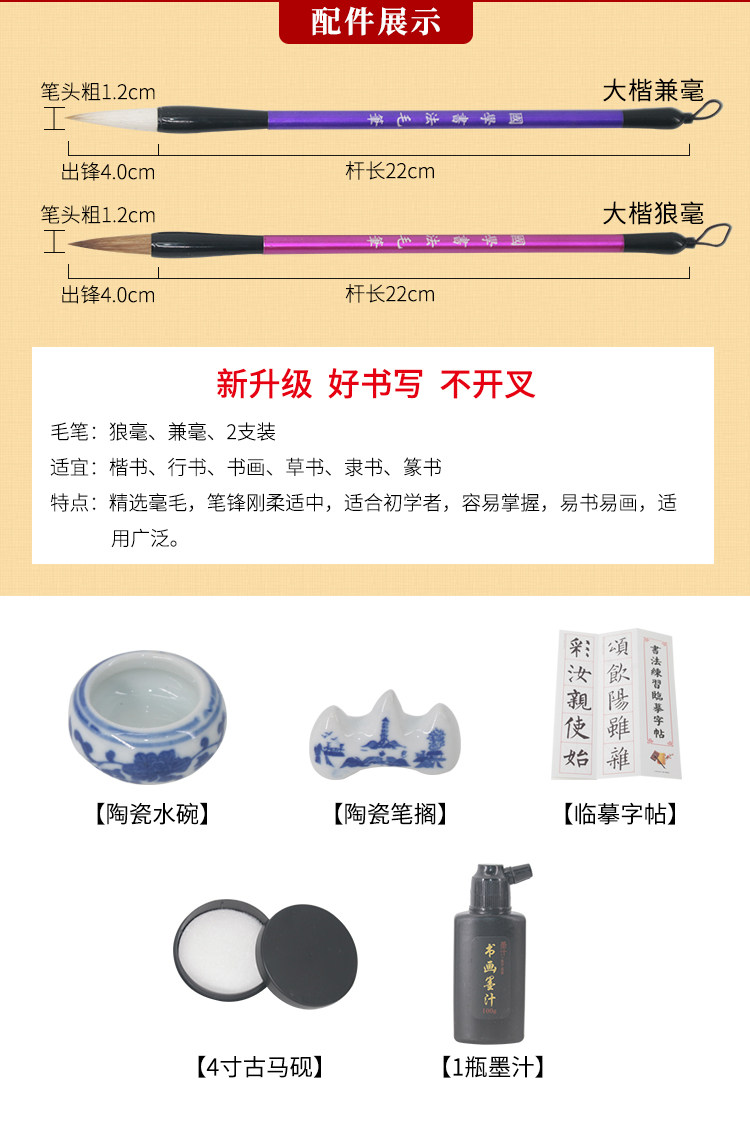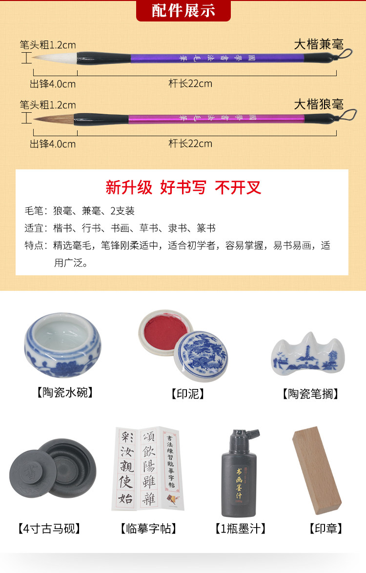 Четыре сокровища исследования комплект Кисть для начинающих слово Каллиграфия для взрослых студентов в писчей ткани Tie Shui дверь комплект Бумага, тушь и перо