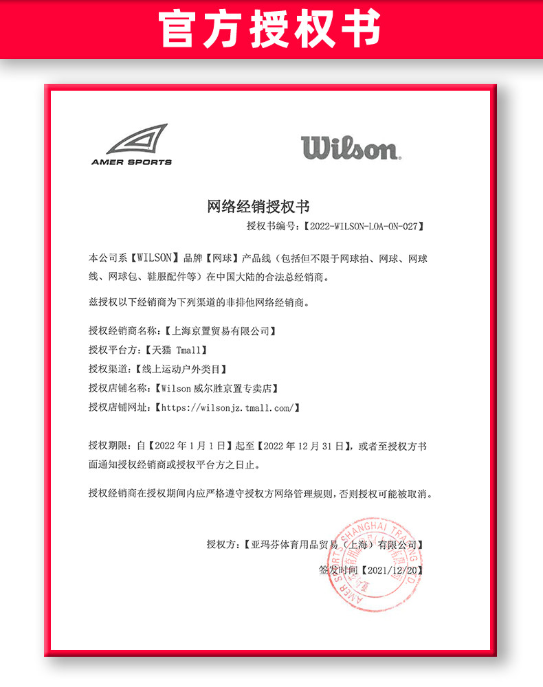 Продавец:wilson威尔胜京置专卖店