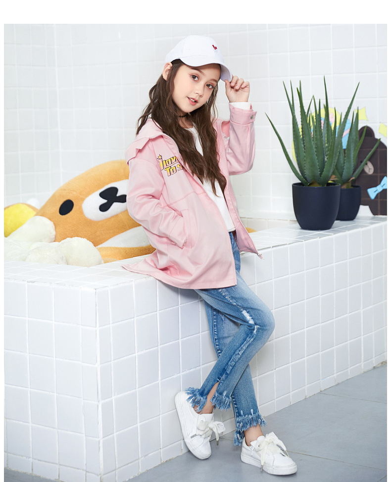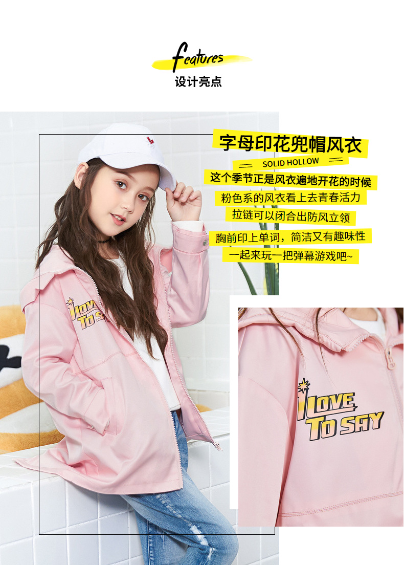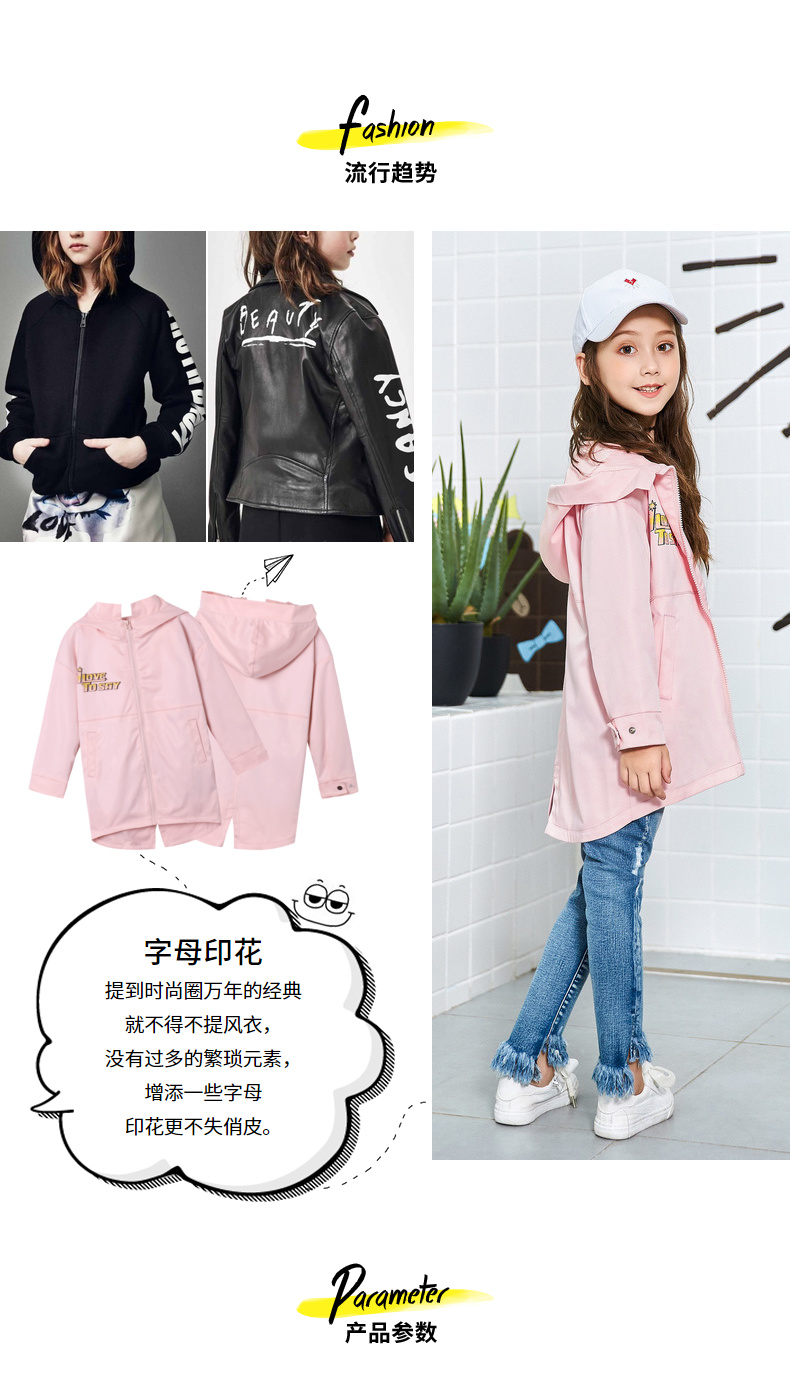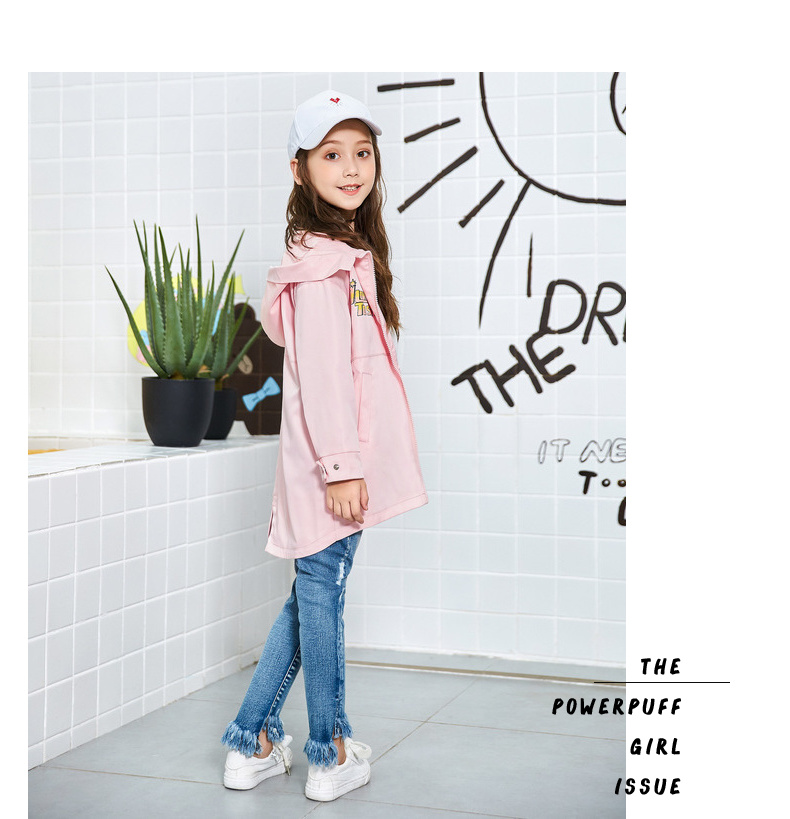 Одежда Tiancheng детское Осенняя одежда новая коллекция на девочку печать куртка Китайский ребенок фасон средней длины стиль детские капюшон ветровка