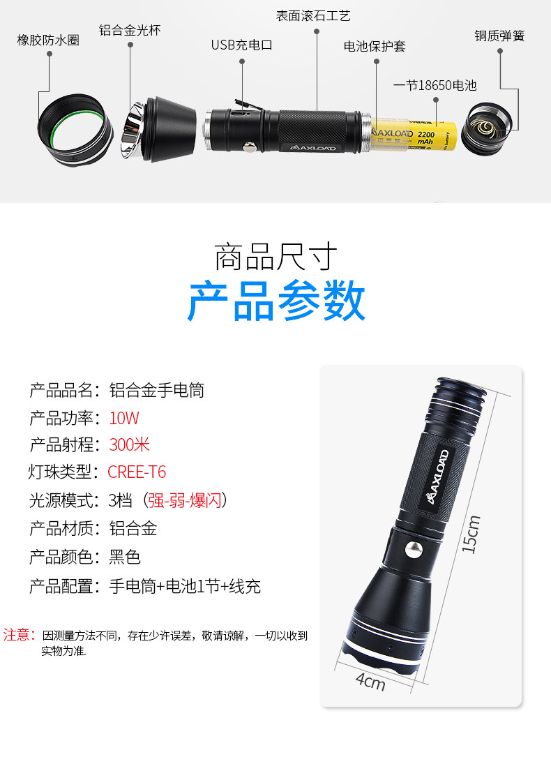 Цвет: Фонарик + 1 литиевая батарея 18650 + зарядный кабель( в подарок зарядное устройство), Фонарик + 2 литиевых аккумулятора 18650 + кабель для зарядки( в подарок зарядное устройство)