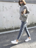 Большой размер винтаж Гонконг ветер джинсы Женская толстая сестра свободный студент прямые штаны корейская версия высокая Талия девять штанов