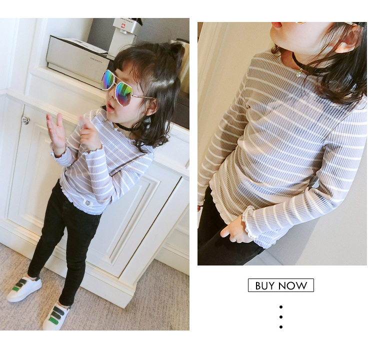 2020 демисезонный стиль новая коллекция детское на девочку детские длинный рукав на девочку Футболка верх одежда детские полосатый принт Рубашка