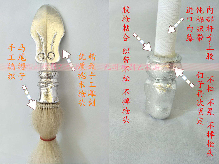 Деревянный импорт белый ротанг красный Тунца Цветочный пистолет нож Madan Martial Arts Stick действительно лошадей хвост Орудие красный Шелковый пистолет