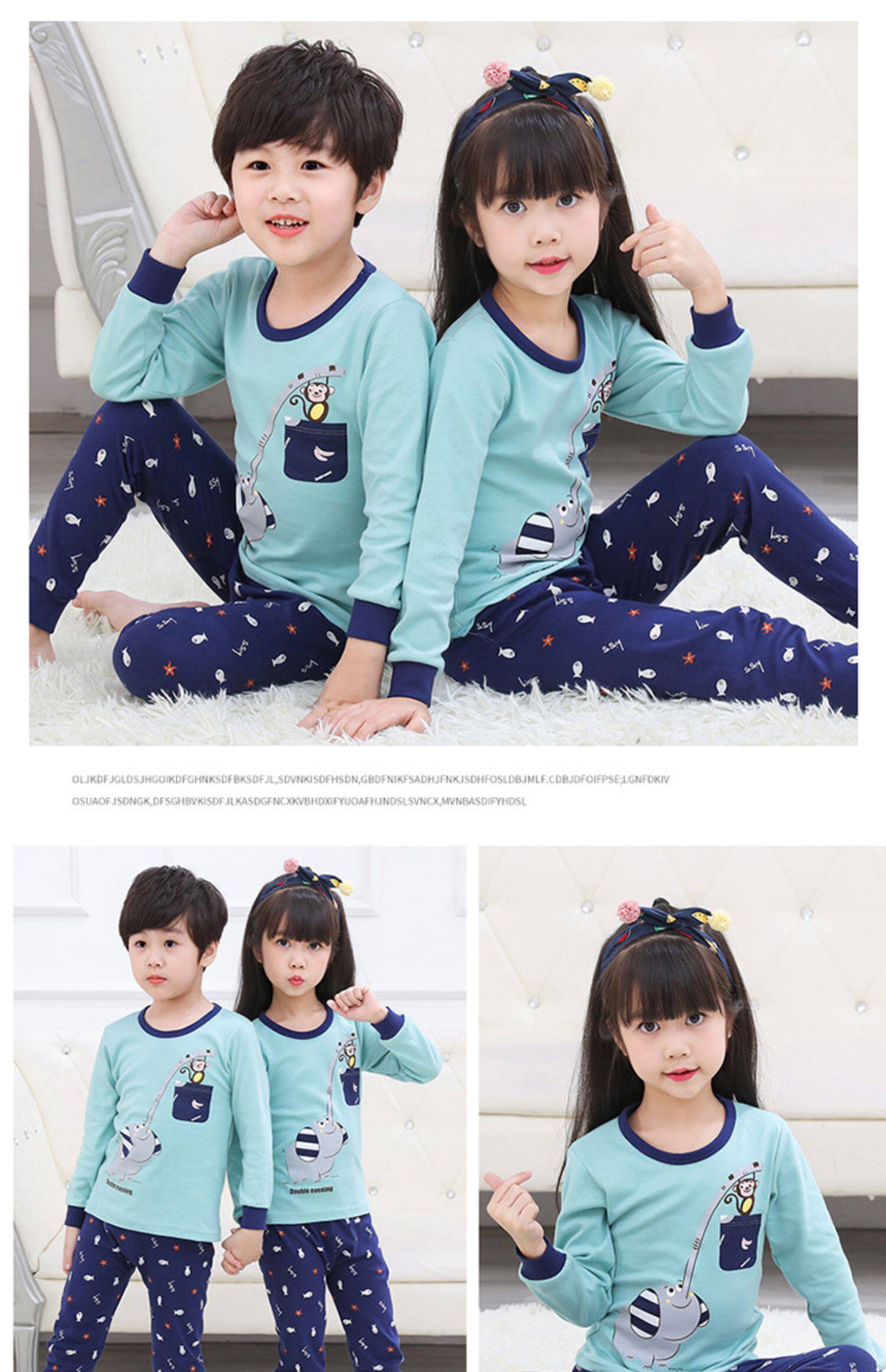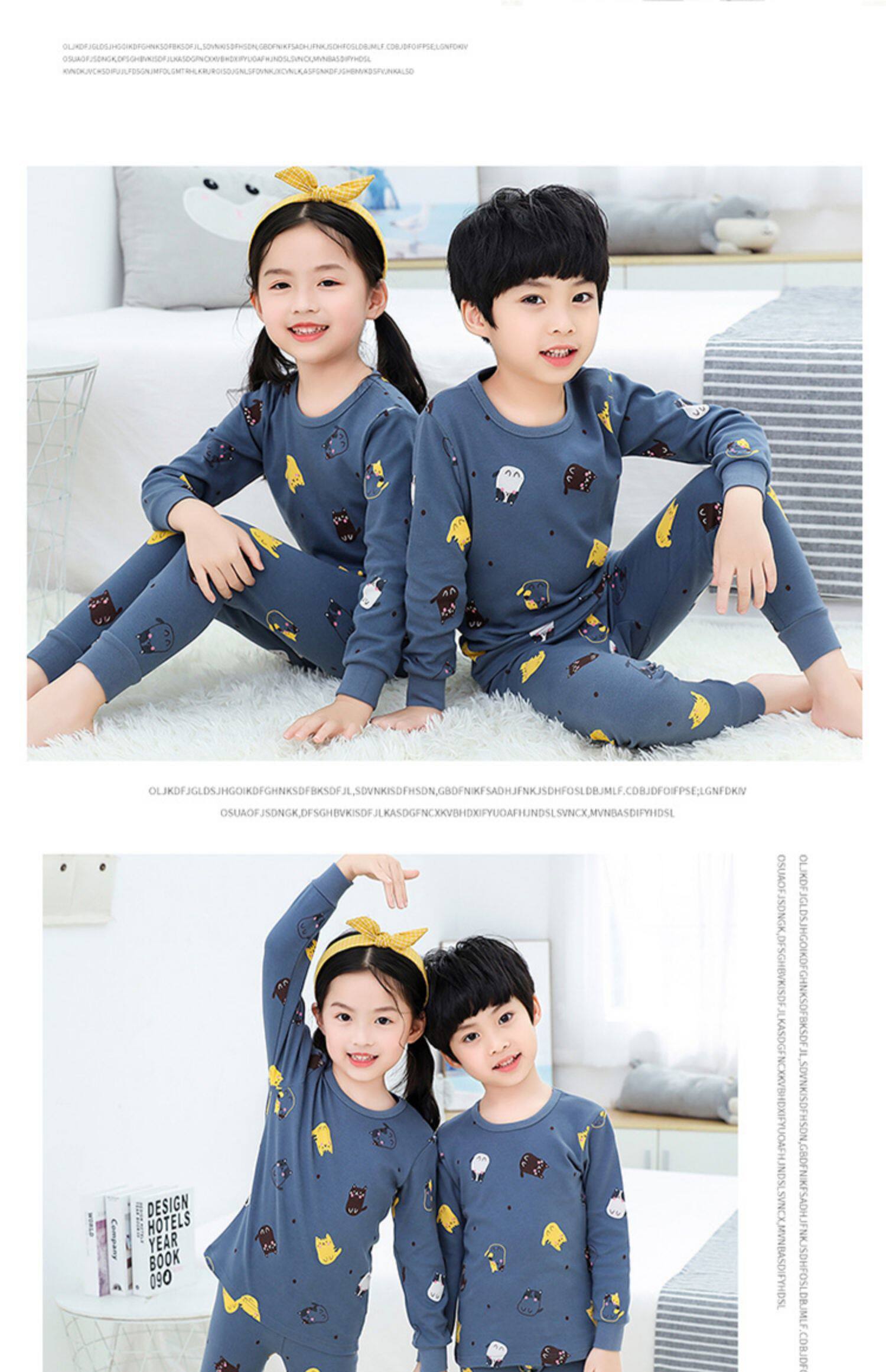 Демисезонный зима детские пижама чистый хлопок мужской ребенок на девочку нижнее белье на мальчика Осенняя одежда комплект Ребенок длинный рукав Трексуит