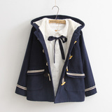 2021 осень-зима новая коллекция Ветер колледжа длинный рукав Рог с застежкой шерсть короткая куртка капюшон замшевый утепленный Шерстяной пальто женский
