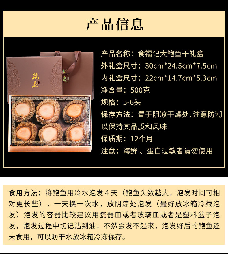 Благословение еды, Абалон, Сухие товары, Абалон, Морская свежая подарочная коробка, Новый год в подарок Li Jiaxin Новый год подарочная коробка 1 кит.фунт 5-6.