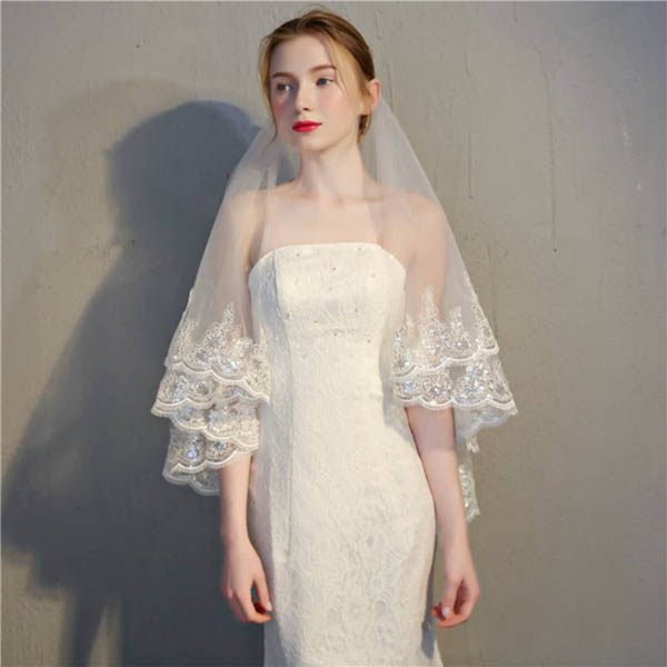 Новый Хорошая голова пряжа 2022 новая коллекция Корейский блестящий кружевные кружева свадебное Свадебная голова пряжа короткая поездка супер фея капюшон