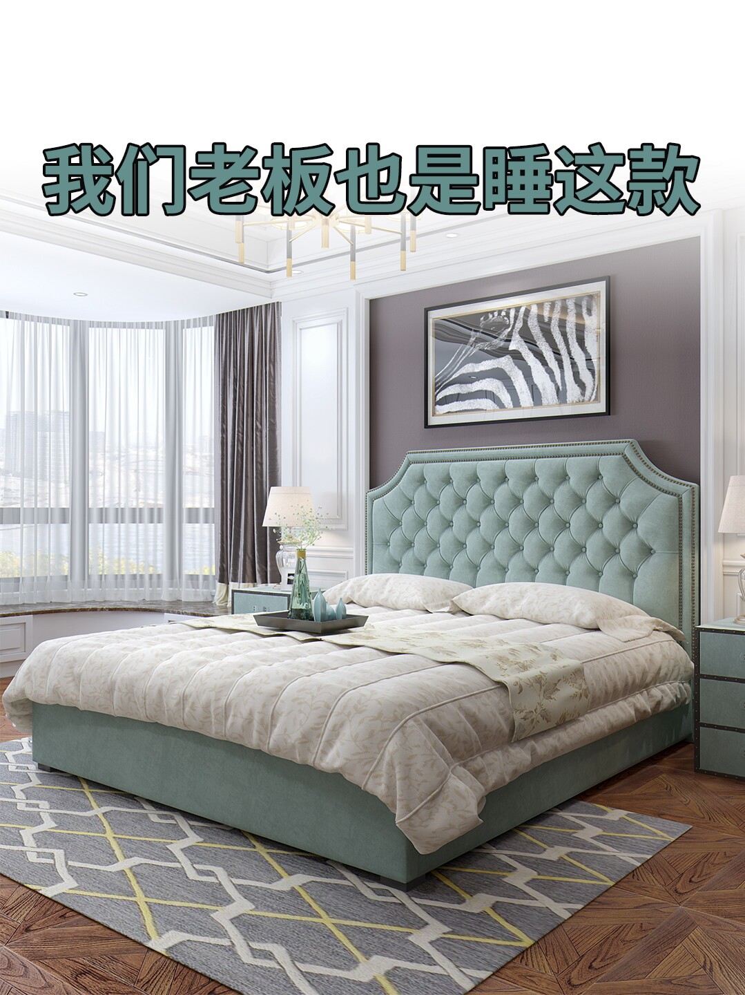 - Голая кровать(Итальянский алмазный ледяной бархат + внутренняя рамка из массива дерева)+ роскошный копия замша матрас