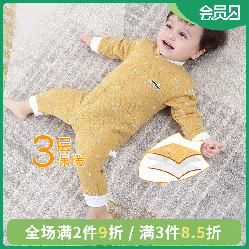На младенца удерживающий тепло Катушка демисезонный утепленный папка хлопок Расколоть мужской 0 лет 1 детские Пижама комплект