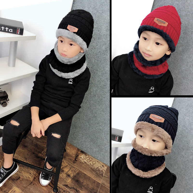Корейская версия детские шапка шарф шарф два наборы осень-зима стиль на мальчика зимний удерживающий тепло утепленный замшевый детские шапка