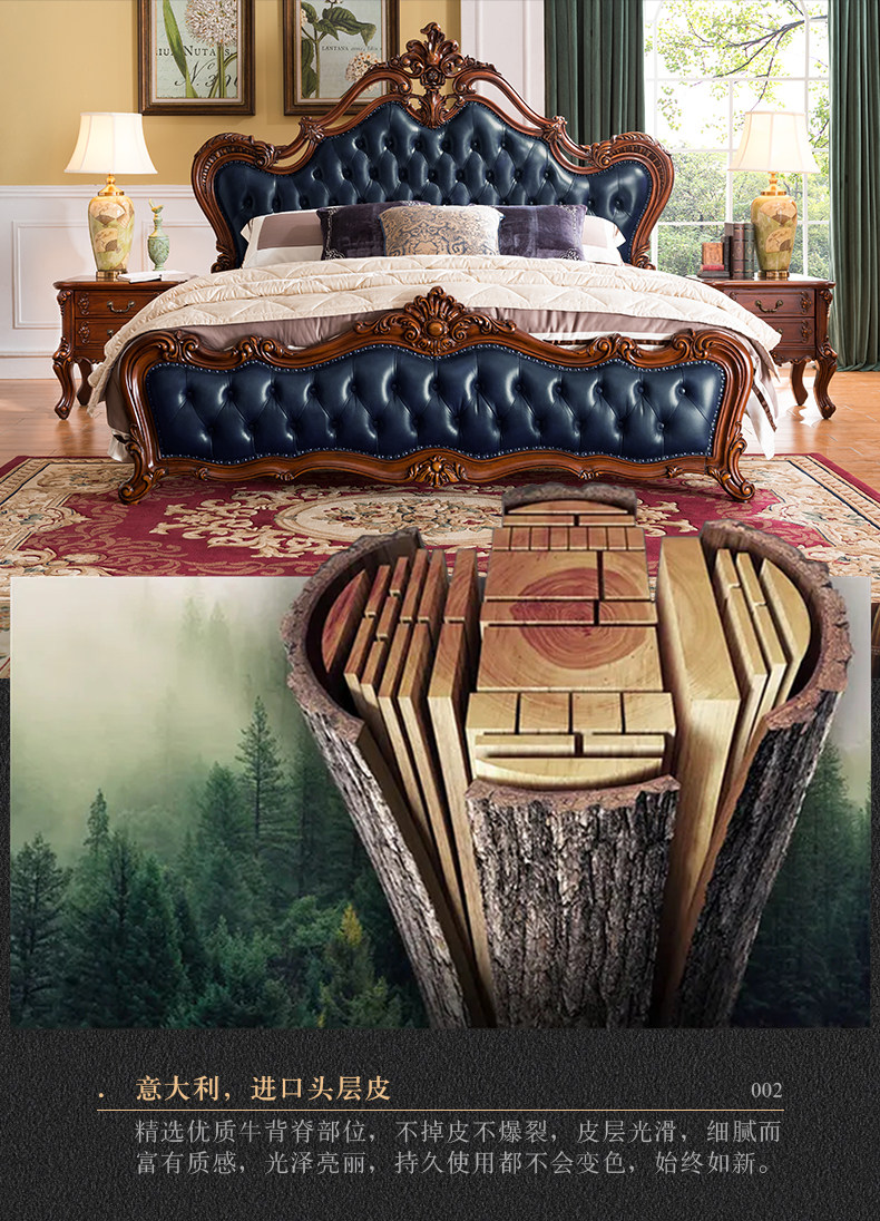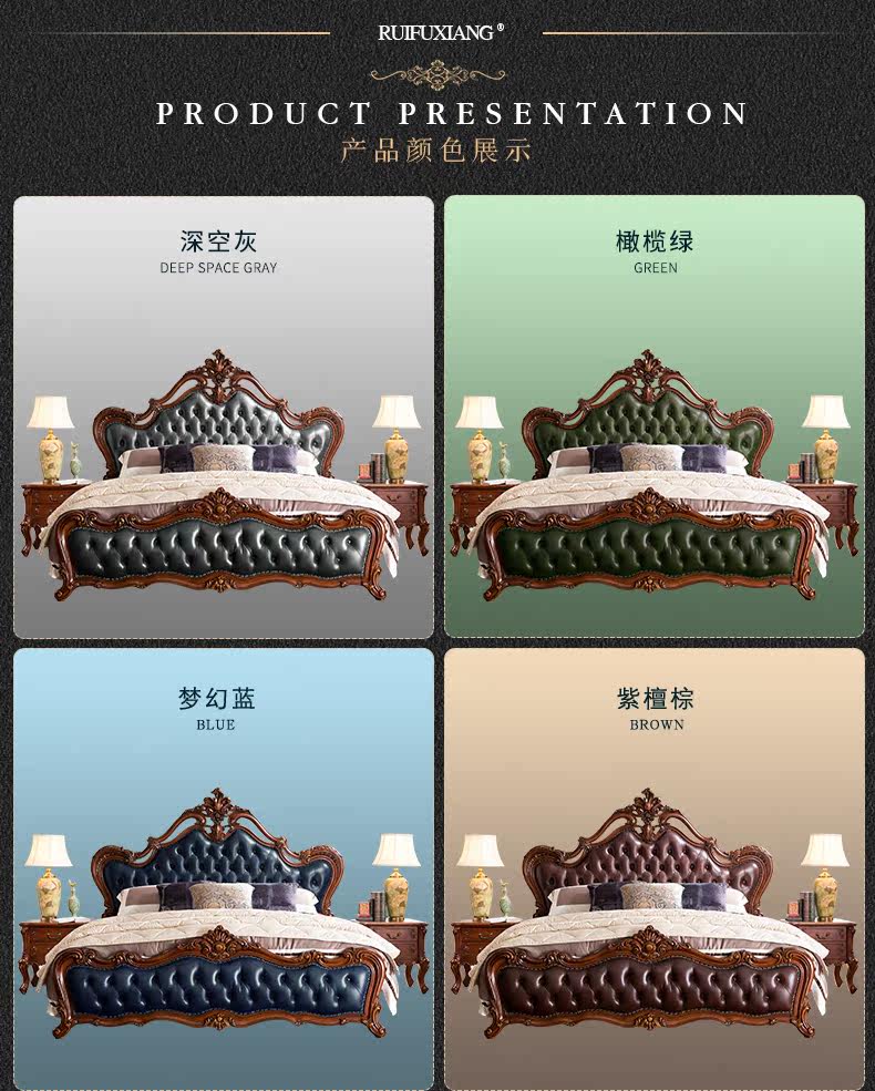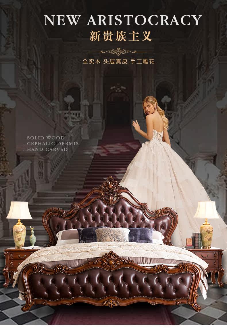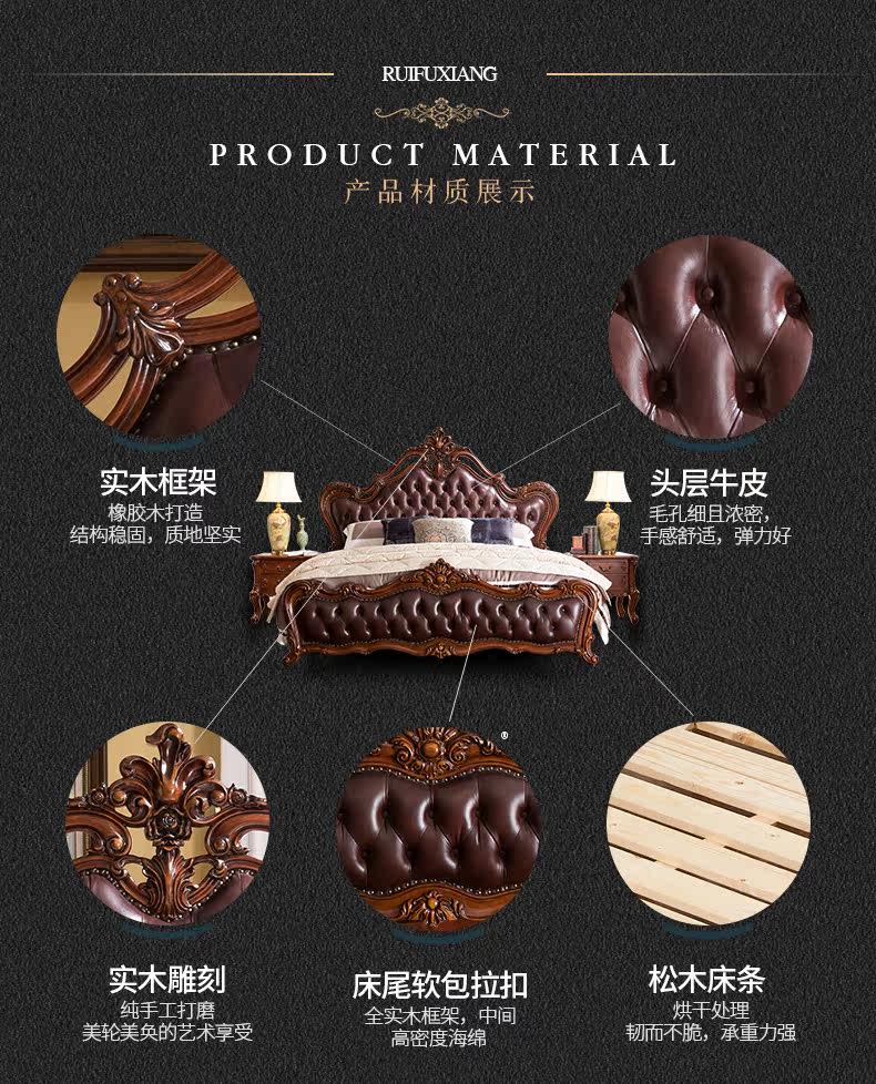 Ruifu Xiang европейский стиль сплошной древесина с двумя кровать из натуральной кожи мягкий пакет для маленькой принцессы Кровать B318.