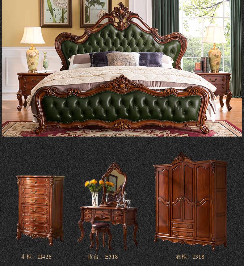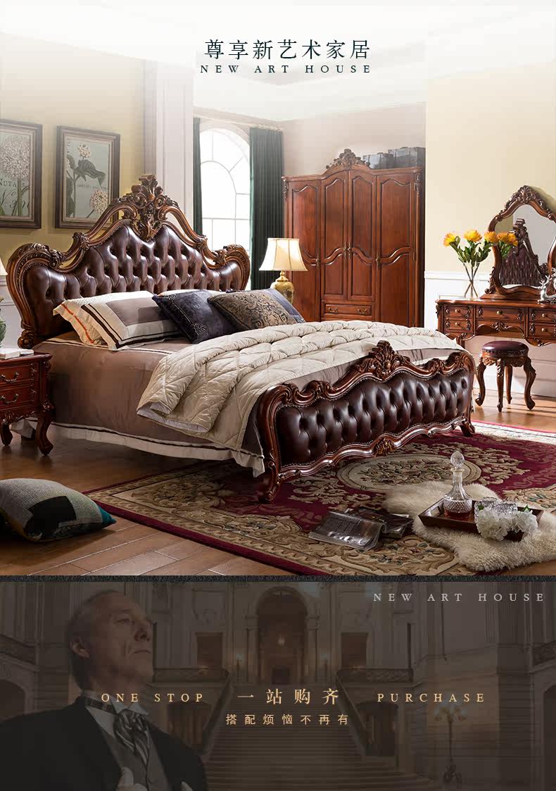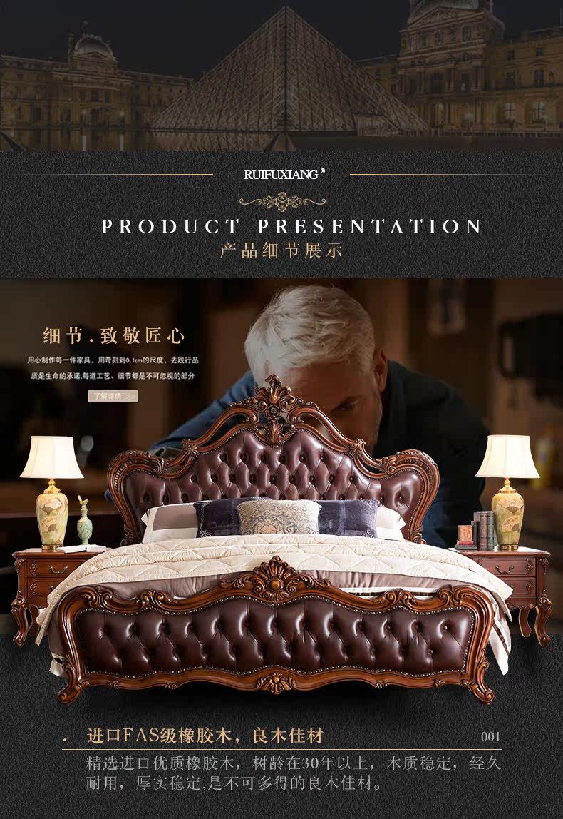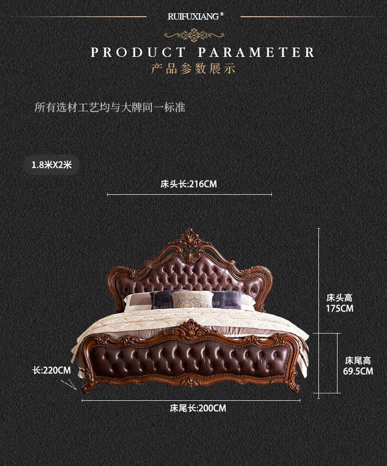 Ruifu Xiang европейский стиль сплошной древесина с двумя кровать из натуральной кожи мягкий пакет для маленькой принцессы Кровать B318.