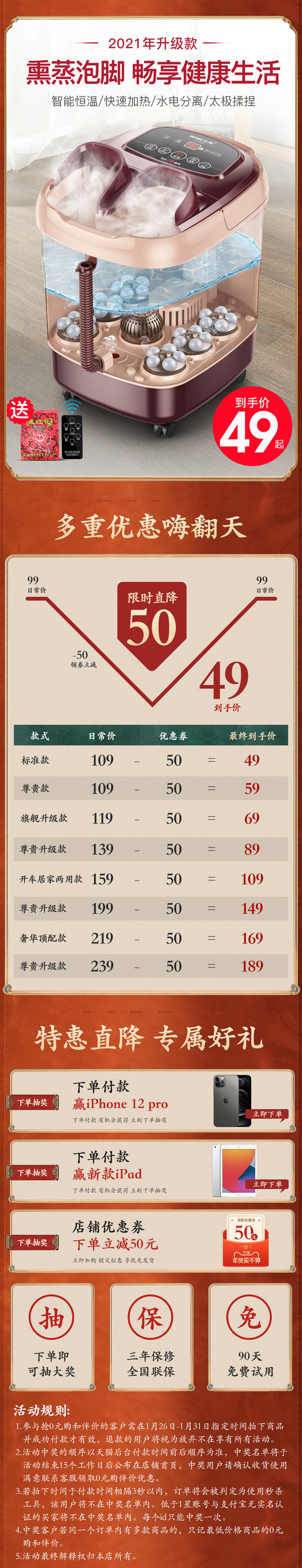 Цвет: 【 стандартный квази версия 】Массаж стоп + закрытая фумигация (49), 【 обновление Фумигация】 полностью Закрытый фумигационный пузырь / 10 комплектов массажа стоп / гидроэлектрическое разделение / запуск одной кнопкой (59, 【 обновление Фумигация + здоровье】 полностью Закрытый фумигационный пузырь / подошва стрелка Игольчатый массаж / интеллектуальная смена частота / Запуск одной кнопкой (69, 【Пузырь для окуривания + добавить высокая утепленный Корпус ствола】Давление пальца на роликовый ролик / полностью Закрытый пузырь для фумигации / быстрый нагрев / интеллектуальная постоянная температура / энергосбережение (89, 【Фумигация замачивания ног + фумигация коленного сустава】4 основных массажных техники + быстрое нагревание + постоянная температура + стрелка Давление пальцем + плюс высокая утепленный Бочка + сдача частота Энергосбережение (109, Роскошный флагман стиль / Трехцелевой фумигации / копия Настоящая фумигация корпус / полностью автоматическая Замес тайцзи / массаж шиацу / многоскоростной контроль температуры / высокая Экран Национального университета Цин Хуа (149, 【Окуривание и замачивание коленного сустава】 полностью автоматическая Массаж + герметичная дезинфекция и ванна для ног + 6 основных техник + 6 раундов массажа + высокая темно Бочка + умная постоянная температура + изменение частота Энергосбережение + пульт -169, Эксклюзивный стиль 【плюс высокая темно Ведро + фумигация и замачивание для трех целей】 полностью автоматическая 10 комплектов роликов + быстрый нагрев + серфинг пузыря + красный Легкое отопление + без Провод пульта ДУ -189, 【Пузырь для окуривания полностью Конфигурация】 Создавать новый Порт для фумигации + 36 массажных шариков + 8 техник + 6 раундов массажа Тай Чи + разделение воды и электричества + дистанционное управление + интеллектуальная постоянная температура + подарок пакет -189