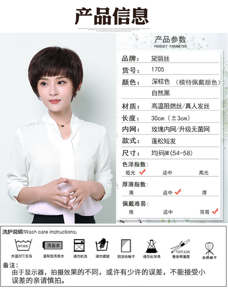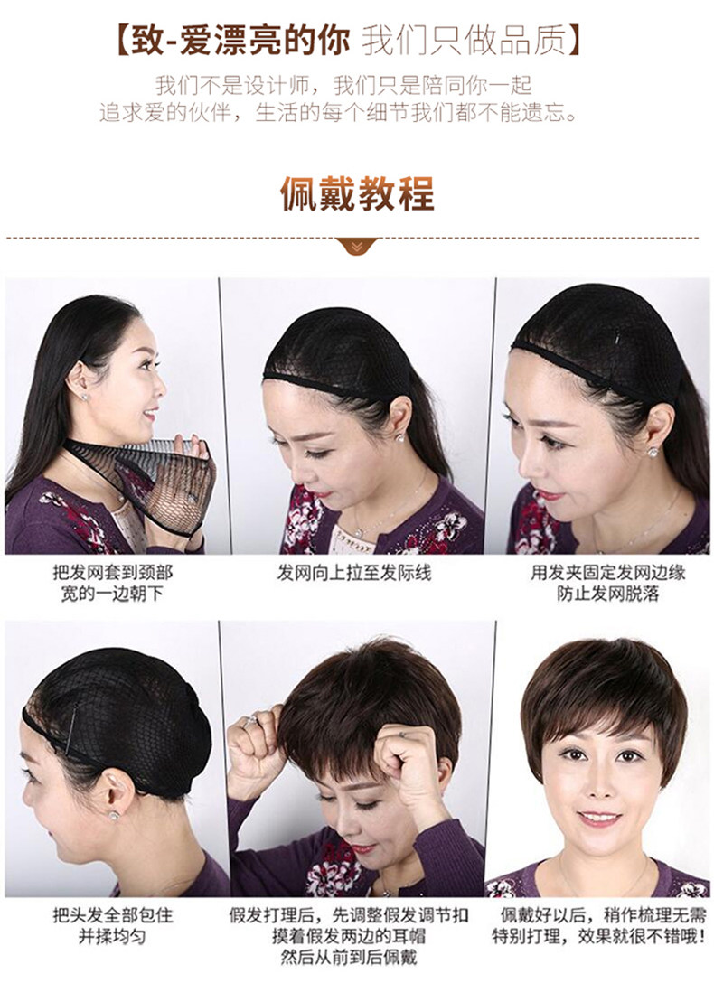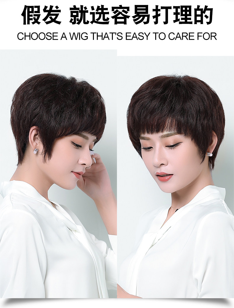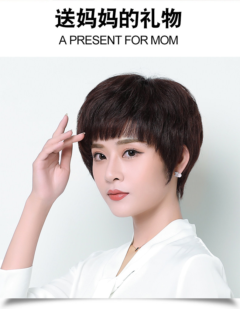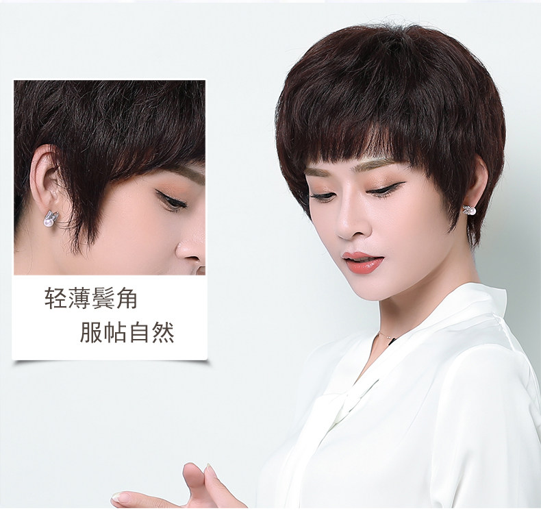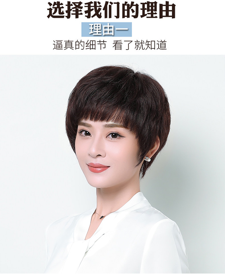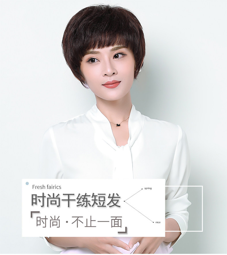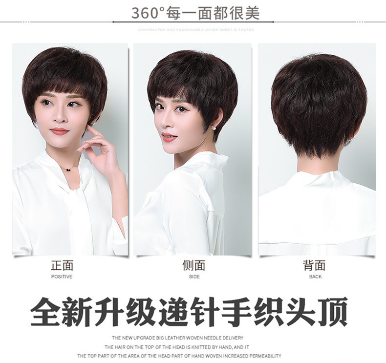 Реальные волосы Fake Женские Короткие Волосы Среднего возраста Мать Реальные Люди Волосы Короткие прямые волосы среднего возраста женский Рука стрелка Целый