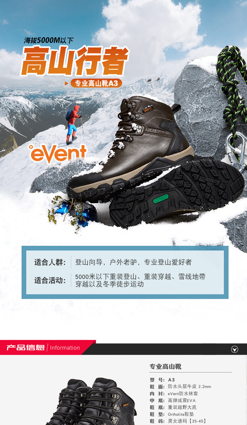 HOTPOTATO / агент на открытом воздухе высокая Альпинистские ботинки альпинистские коньки EVENT водонепроницаемый удерживающий тепло высокая Горные ботинки А3