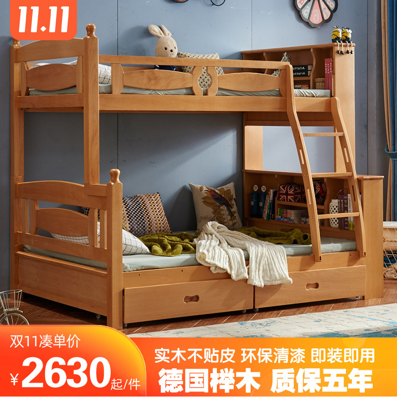 Кровать из массива бука детские полностью Кровать из массива дерева высокая Низкая кровать двухслойный Кровать книжная полка верх и низ Кровать можно разделить