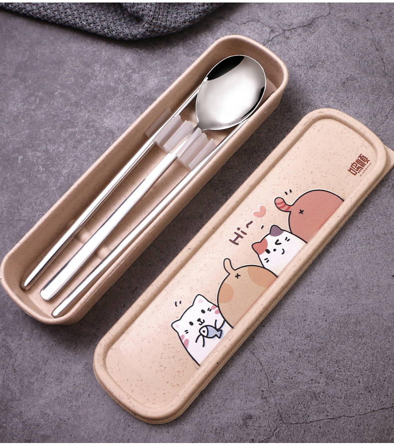 Ложка для палочек комплект Портативный для учеников начальной школы детские Столовые приборы милые 3 накладки вилка один Люди выносят органайзер