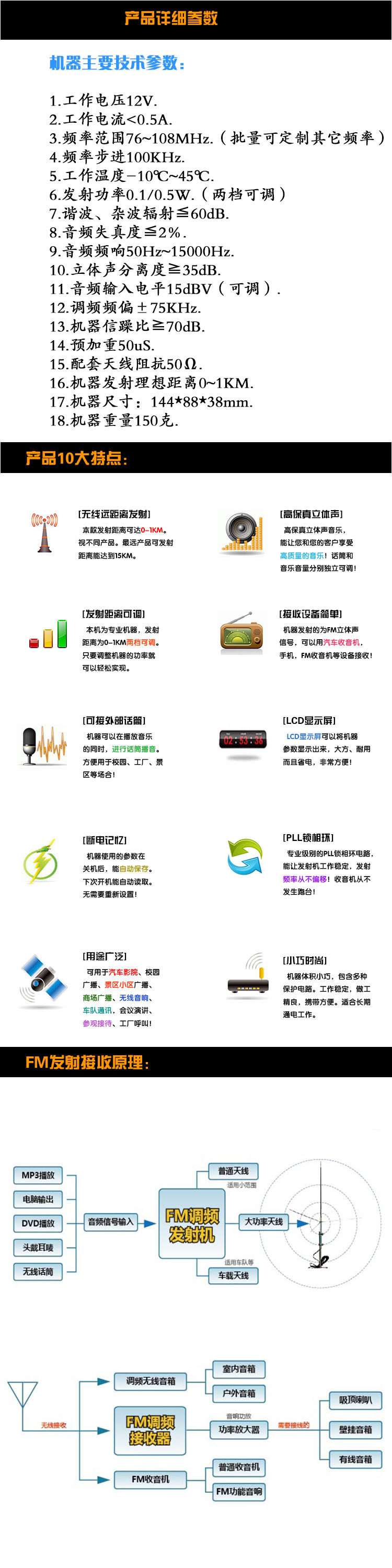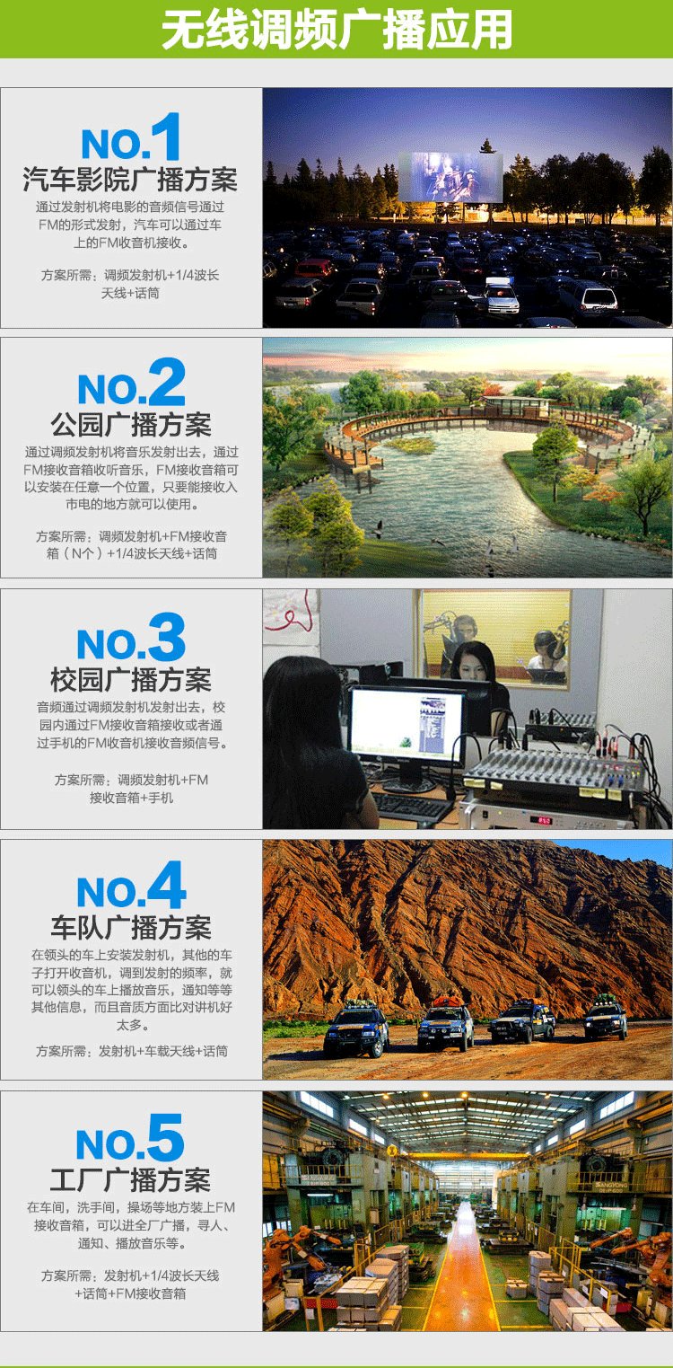 Регулировать частота Расстояние передачи передатчика зависит от многих факторов, основания реального расстояния верх Отказ установка Антенна высокая Степень, усиление антенны, используют среду, такие как здания и другие препятствия, чувствительность и приемники антенны. установка Антенна высокая Степень высокая Расстояние, используемое в сельской местности, будет больше темно Далеко. Вообще говоря 50W низ Запуск корпус Радиус находится в пределах 10 километров, регулировка 1000 Вт частота Передатчик может быть покрыт корпус До 30 км.