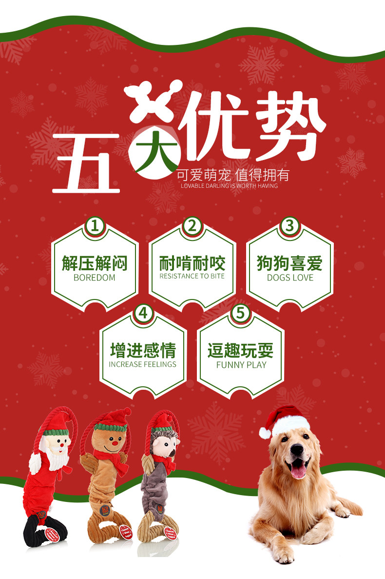 Рождественские игрушки для собак Qi Min CharmingPet Teddy Husky Устойчивые к зубам игрушки для домашних животных