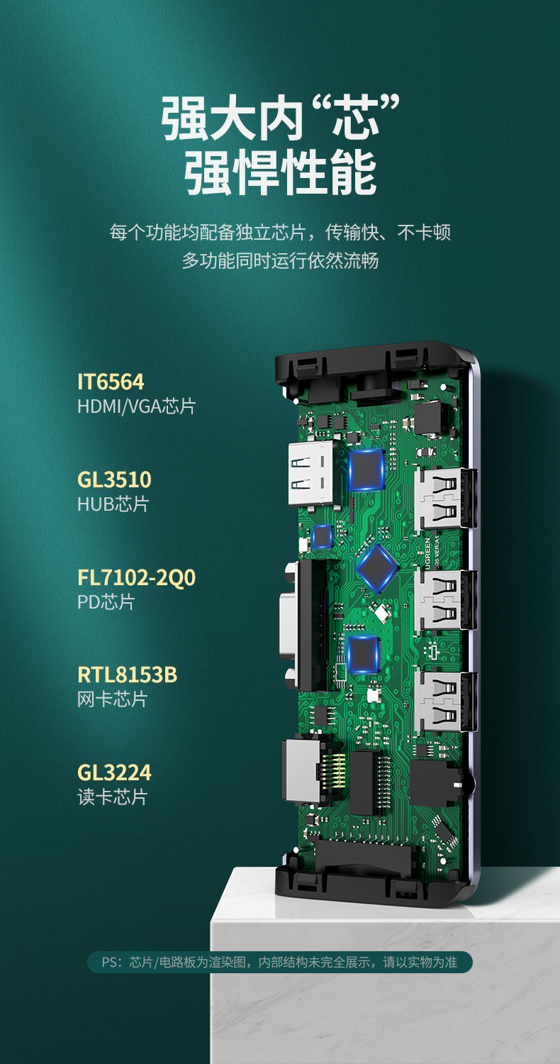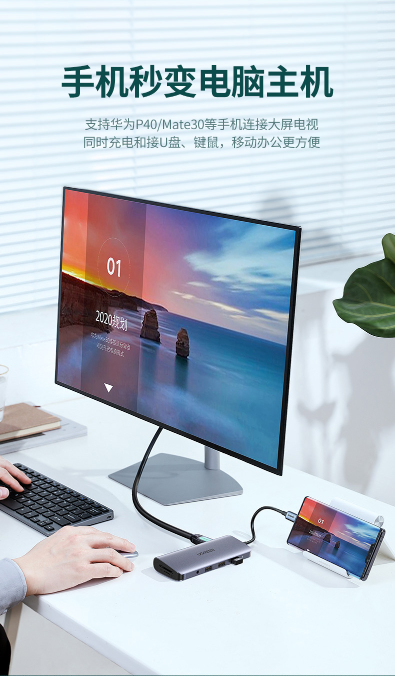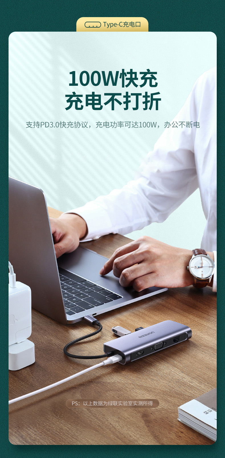 Расширение док-станции с зеленым соединением для расширения док-станции для MacBook конвертер USB-адаптер для ответвления сетевой кабель адаптер thunderbolt 3 к hdmi / vga подходит для компьютера apple мобильный телефон huawei lenovo small новый ноутбук