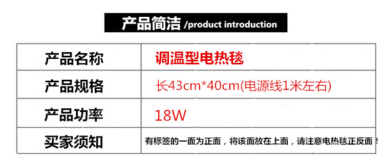 【Меры предосторожности】:Не открывайте использование, не вставляйте PIN-код, не помещайте его в слишком мягкие места, запрещенный тяжелым воздухом, строго запрещенным со складыванием Оборудование используется, чтобы избежать имеет Не используйте горячую проволоку, не мыть или химчистку, не используйте его, не позволяйте младенцам и детям использовать или использовать людей, которые не чувствительны, безопасность электрической циновки полностью Период использования 3 года.