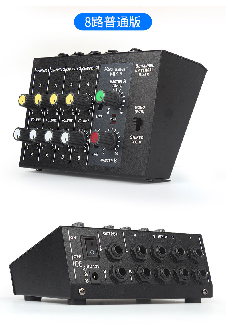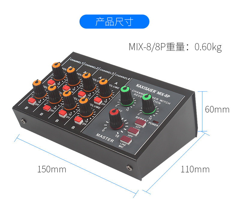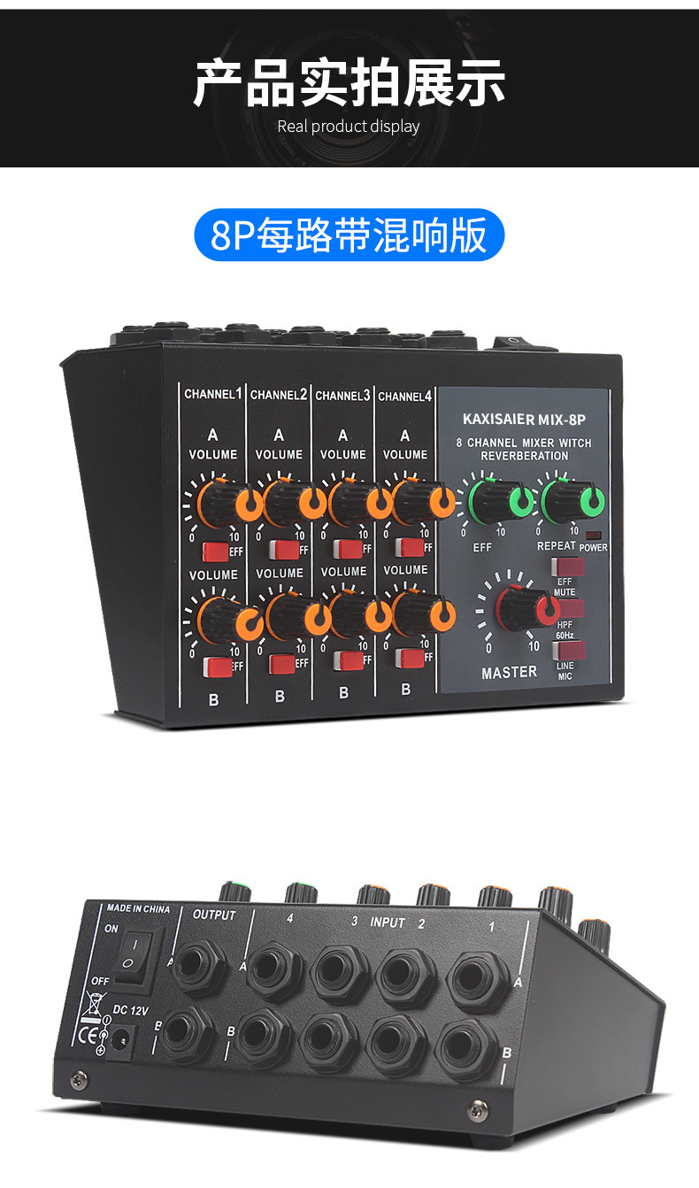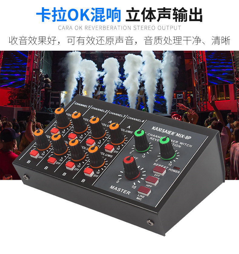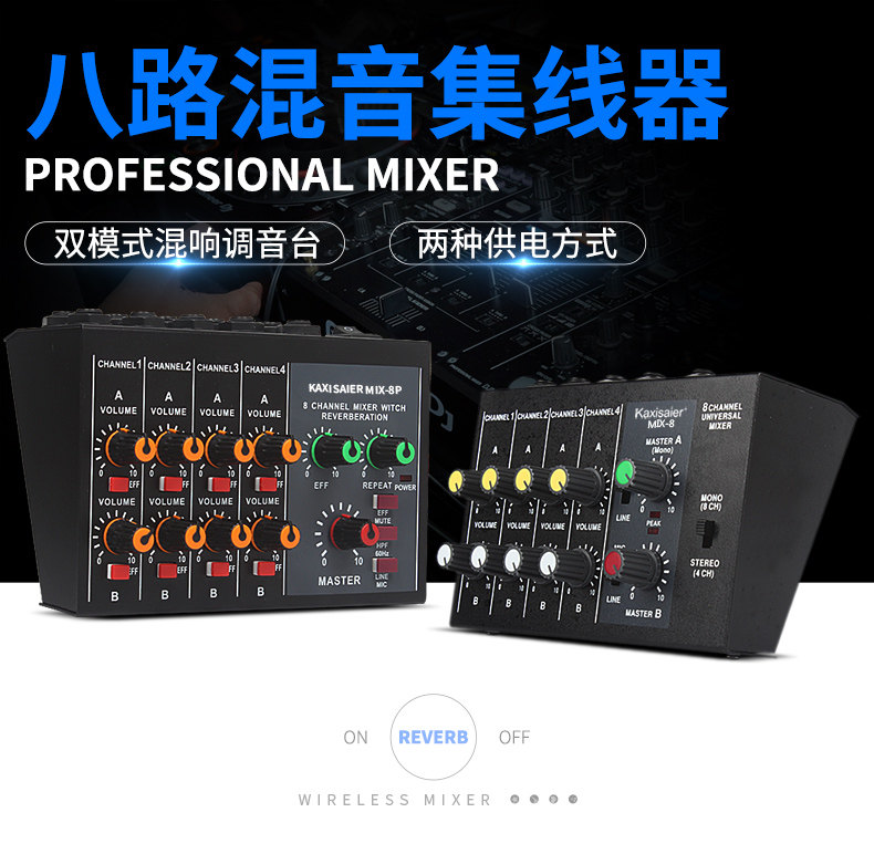 Kaxisaier Mix-8 Reverbeter 8-канальный микшер Мини-микшер Малый музыкальный инструмент Микрофон расширитель