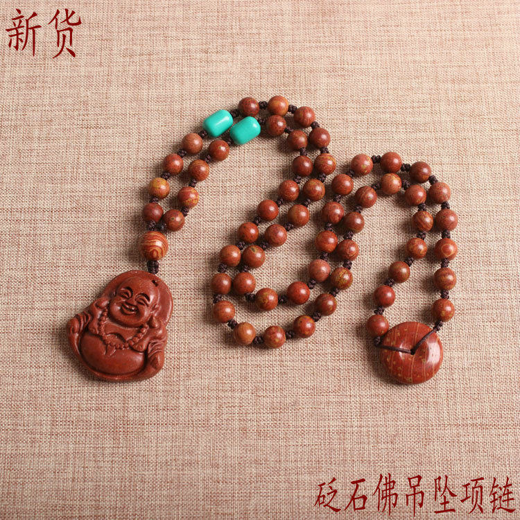 Sibin Bianstone Authentic Shandong Natural Surabaya Богатая и благородная красный Бианстоун сейф с застежкой Ожерелье с подвеской Будда оригинал бесплатная доставка по китаю