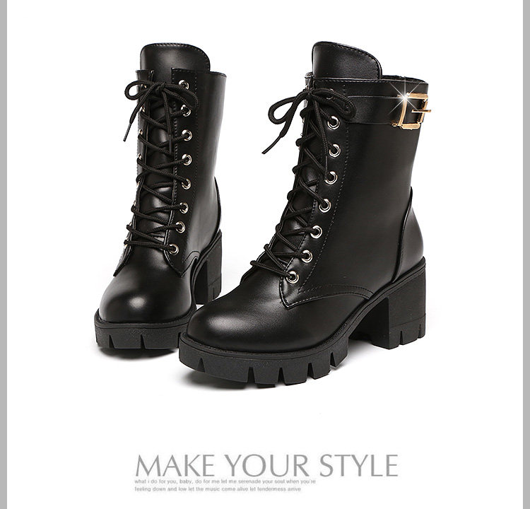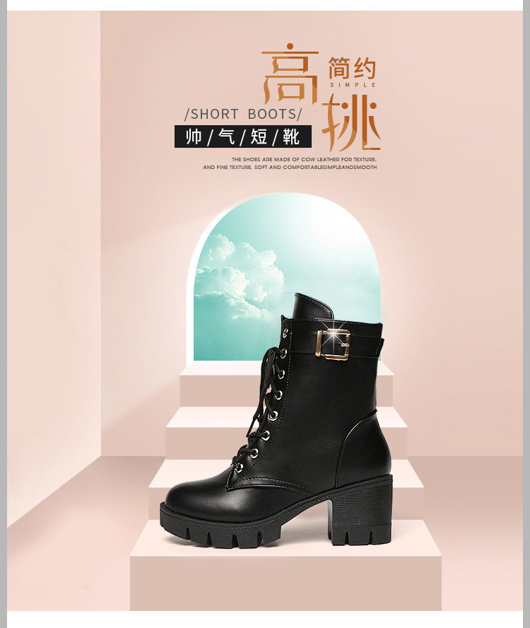 Зимний берцы женский винтаж угги замшевый ученик кожаная обувь ботинки Женская обувь короткая труба широкий каблук женский сапоги