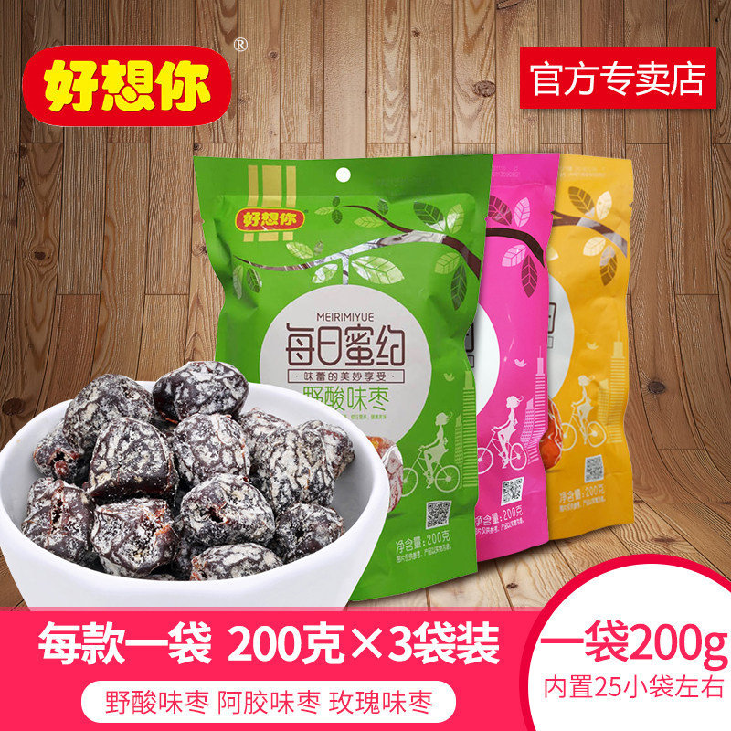 Я так по тебе скучаю по меду каждый день, дикий кислый мармелад, мармелад со вкусом ослиной жевательной резинки, мармелад со вкусом розы 200 г * 3 пакета засахаренных фиников без core Цукаты