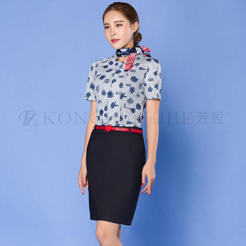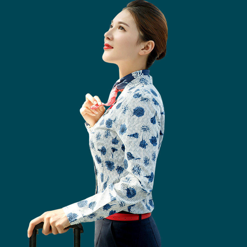 Сестра Восточных авиалиний сорочка Женский длинный рукав Летний цветочный сорочка Женский винтаж Дежурный на стойке регистрации берет интервью у профессиональной формы