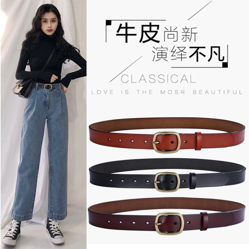 Женский Простой и универсальный пояс популярный корейский чистый кожаный черный ремень из натуральной кожи Студенческое украшение джинсы Приведи девушку
