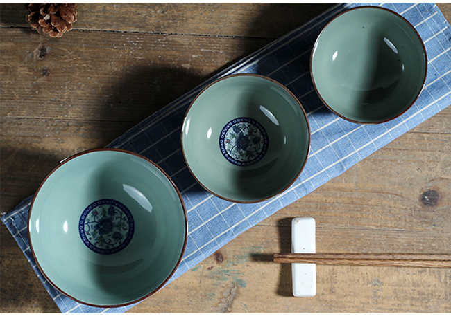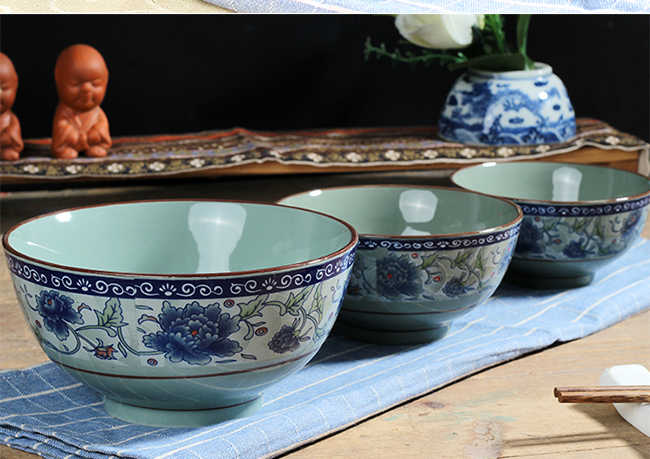 Цзиндэчжэнь блюда из селадона комплект Прямая миска для лапши, миска для риса, китайская японская керамическая посуда, бытовая утепленный Анти-горячий