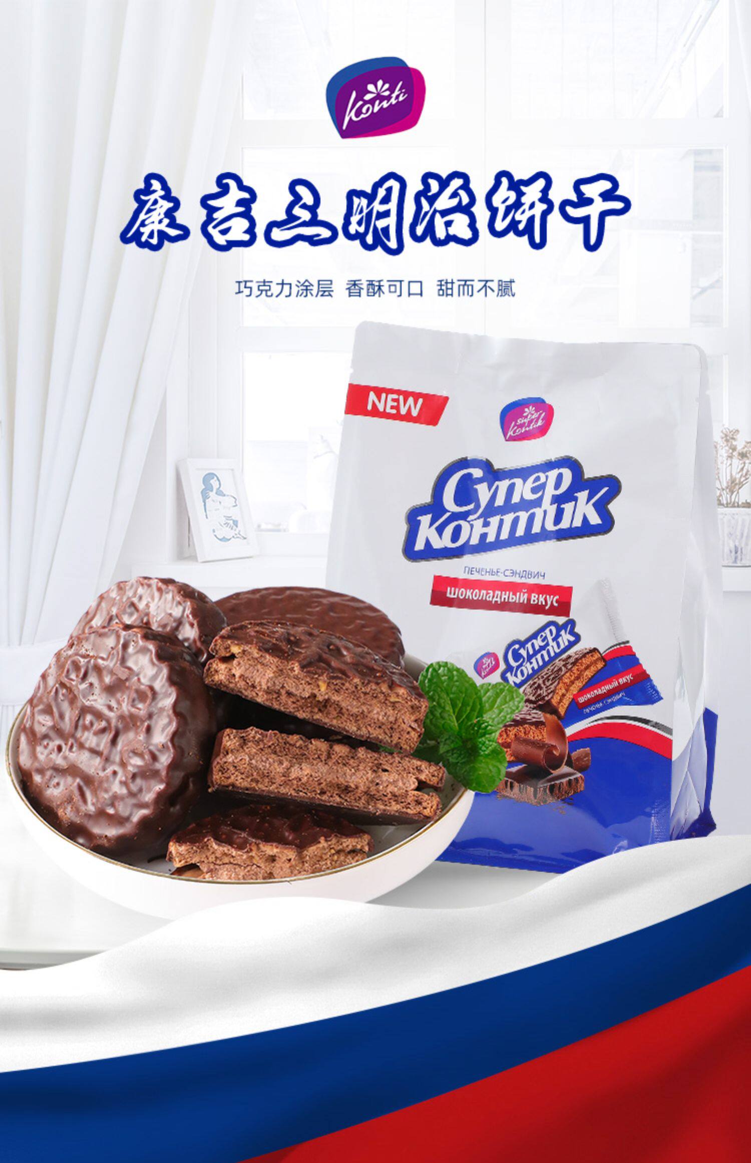 Русский сэндвич-бисквит Конти Канццзянь груди Грудь Осенний Аромат Сэндвич Шоколад импортированных закусок