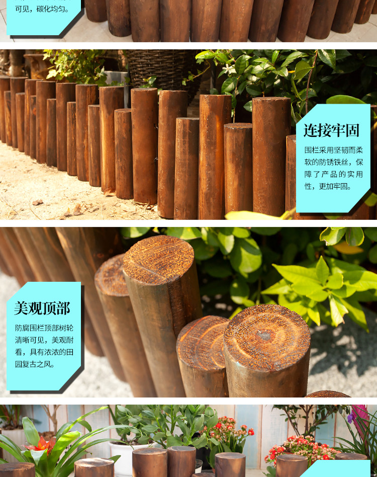 Антикоррозийный деревянный забор на открытом воздухе садовый забор двор внутренний забор украшение балкона карбонизированный небольшой деревянный ворс наружное ограждение