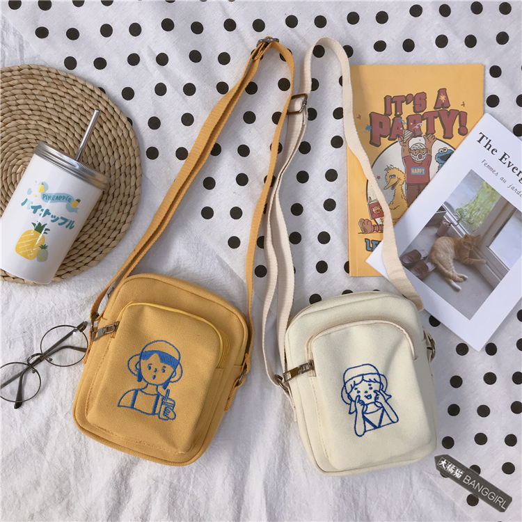 Японская оригинальная милая девушка подруги один плечо пакет Студенческие подруги кисточка уличные вышивки пакет Маленький ангел холст пакет