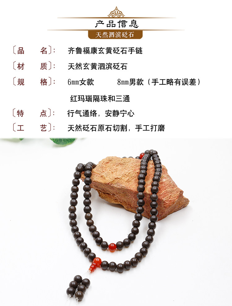 Qilu Fukang Xuanhuang Yanshi Bracelet Woman мужской Магнетитный браслет для влюбленной пары Магнитная терапия Здоровые магнитные бусины Будды 108