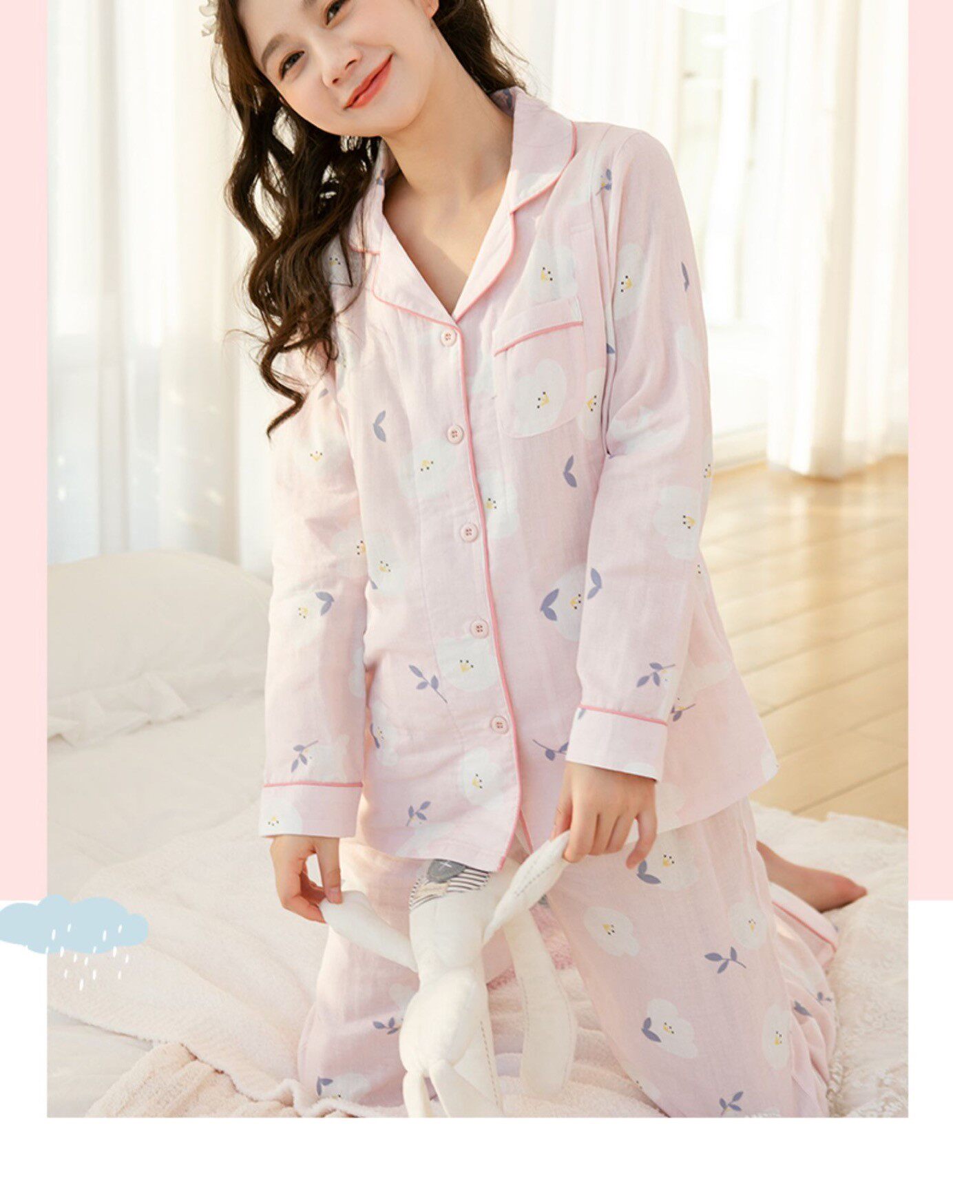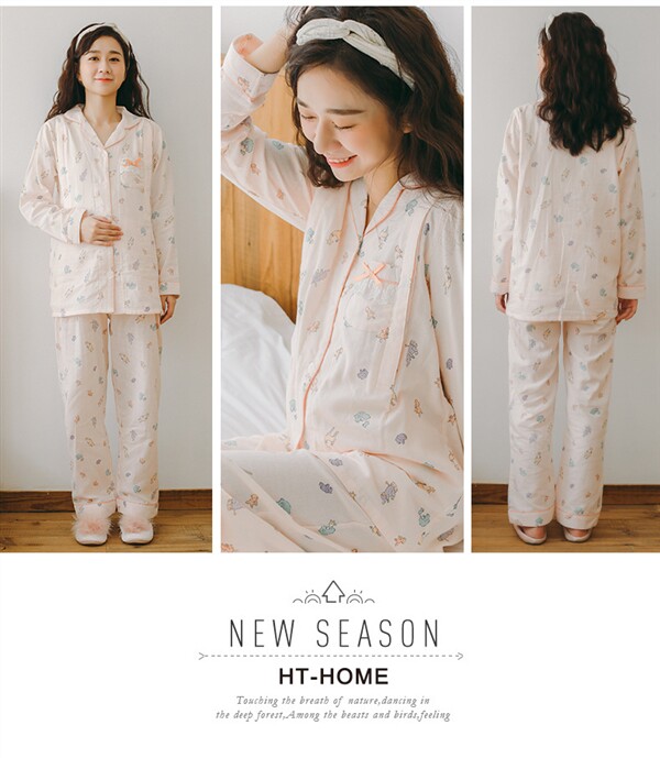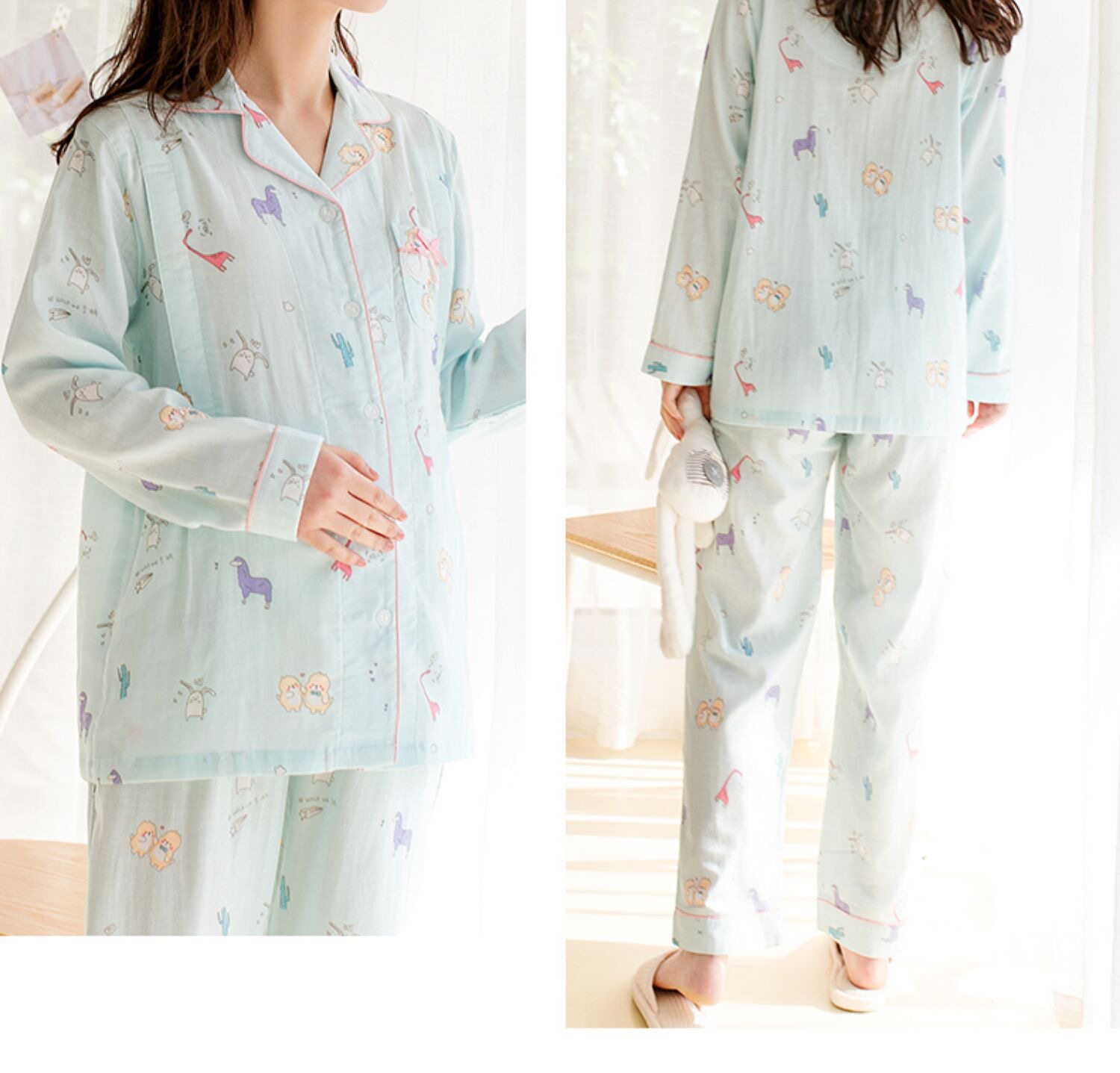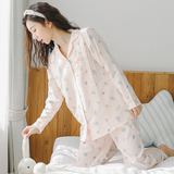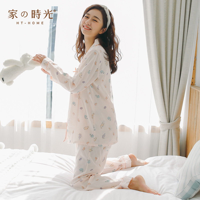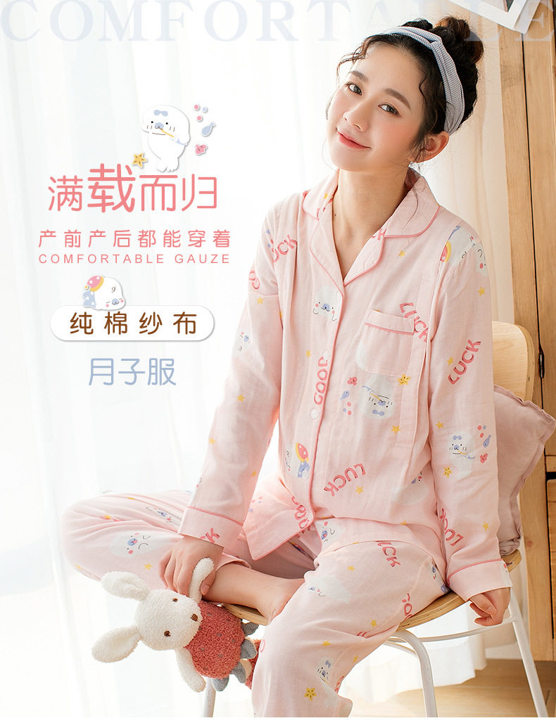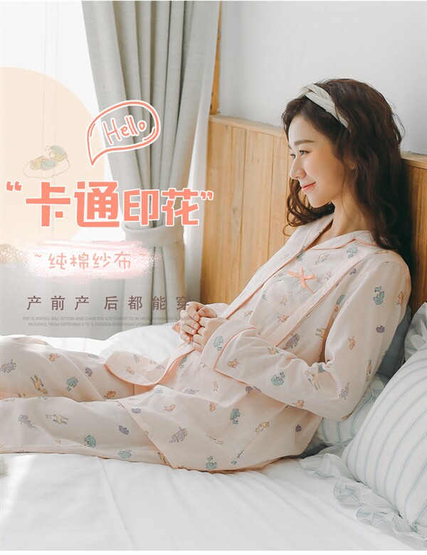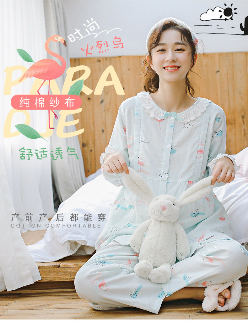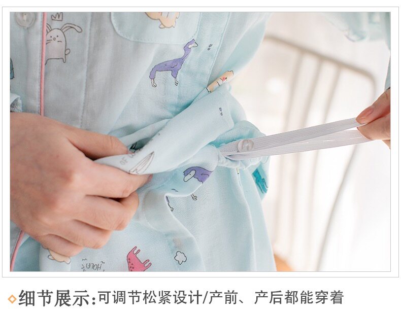 Домашнее время удержания летних марле тонких стиль чистый хлопок Беременная женская пижама два наборы Квид грудью вскармливание после родов