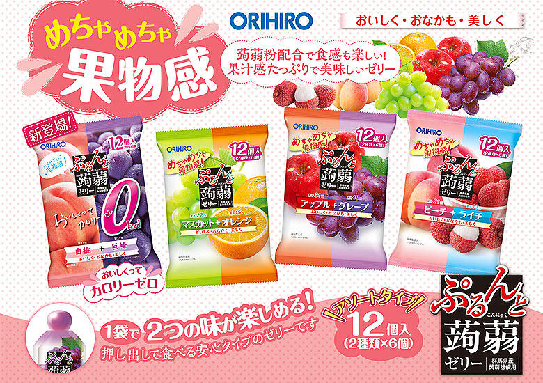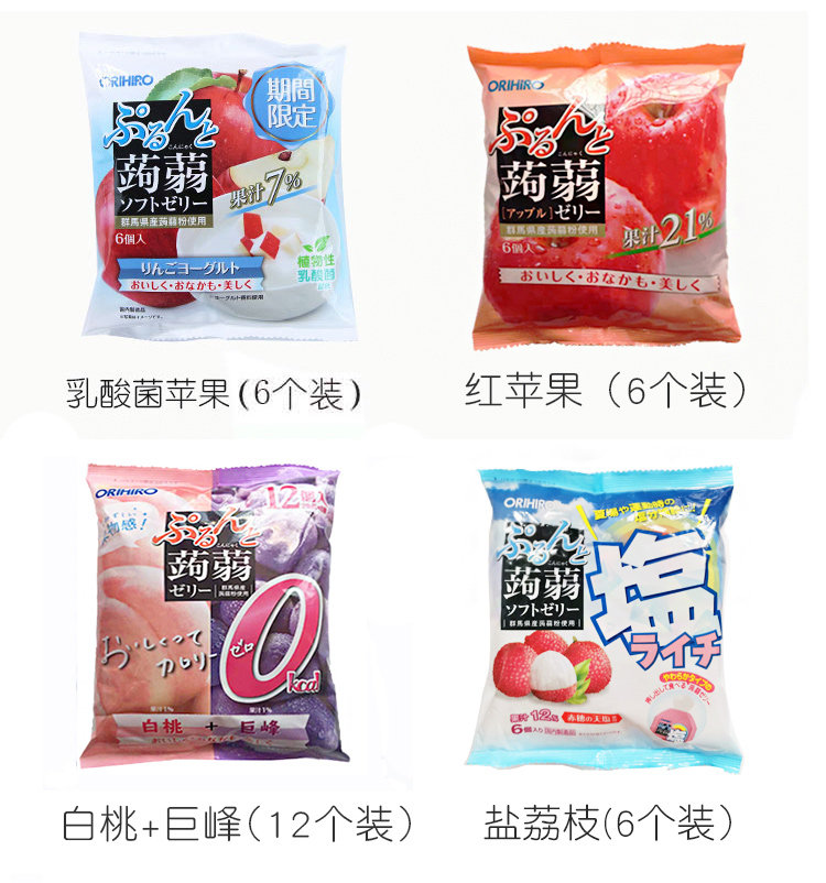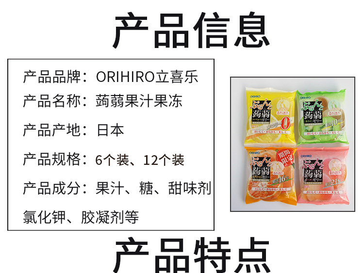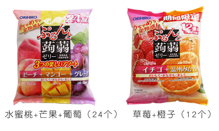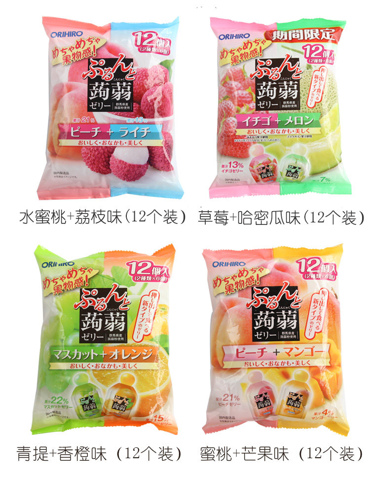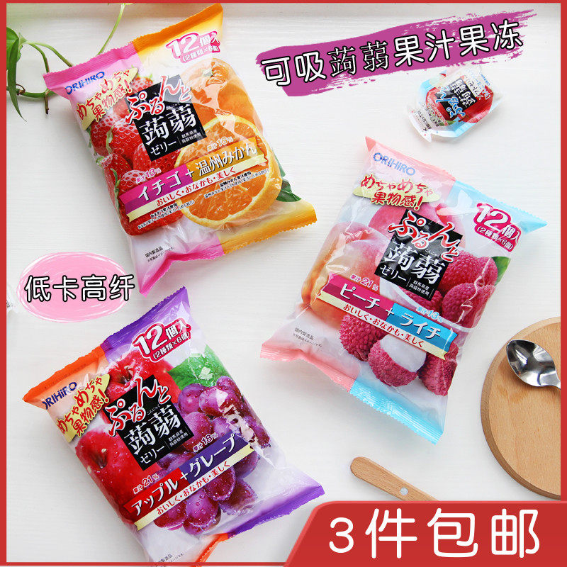 日本ORIHIRO立喜乐果冻 可吸蒟蒻低卡高纤水果果汁果冻布丁零食