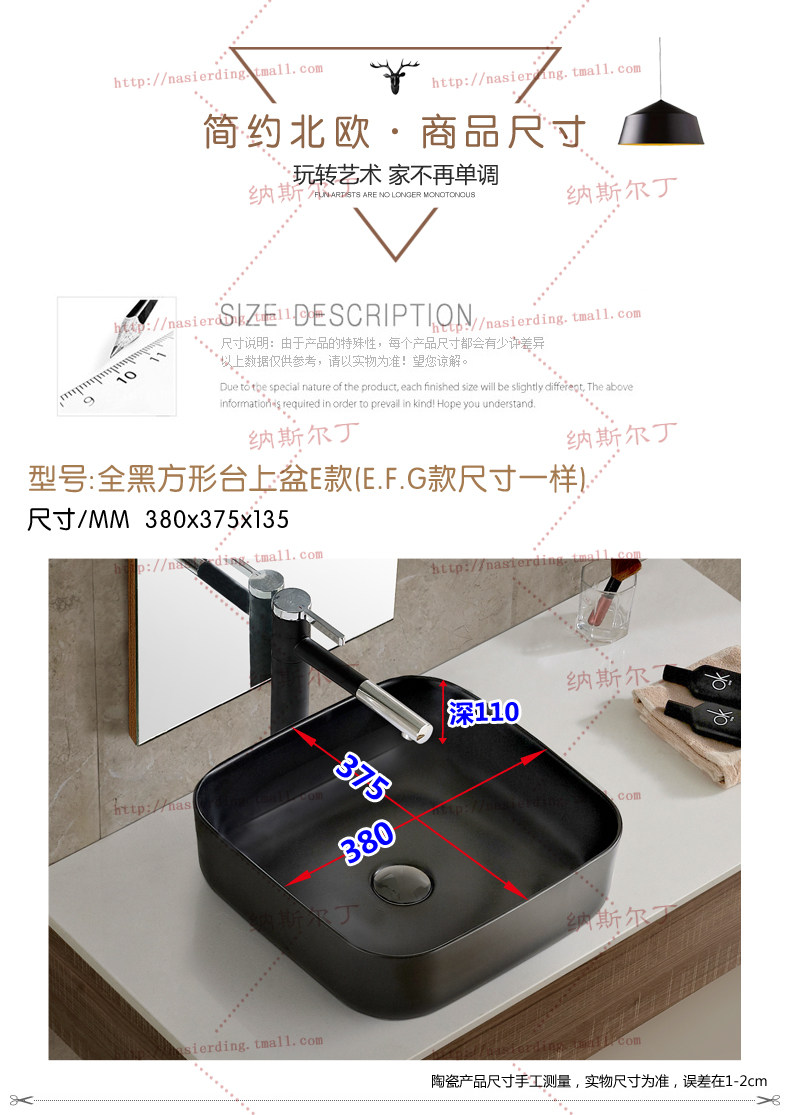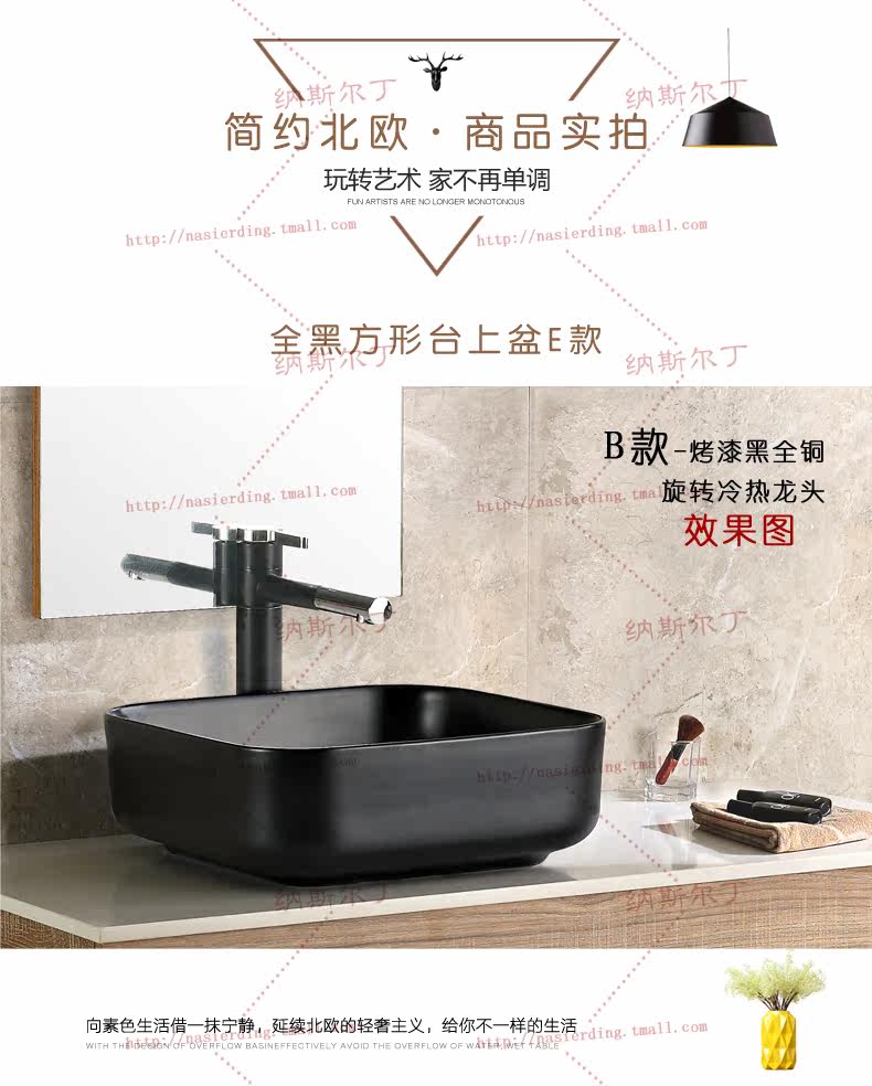 Стол в скандинавском стиле верх Горшки черный Керамическая раковина квадратной формы без Таз с отверстием