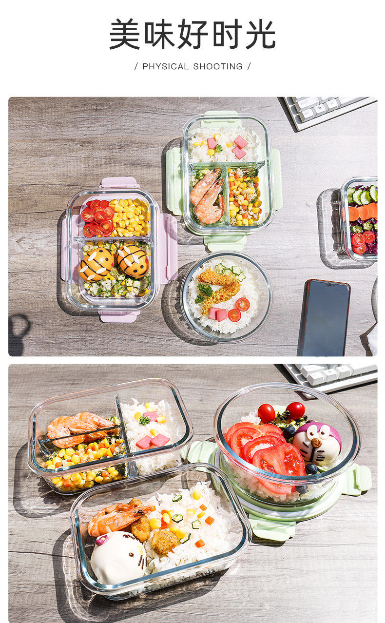 Стеклянный ланч-бокс с микроволновым нагревом верх Тип разделения классов для Ланч-бокс изотермический ланч-бокс для студентов
