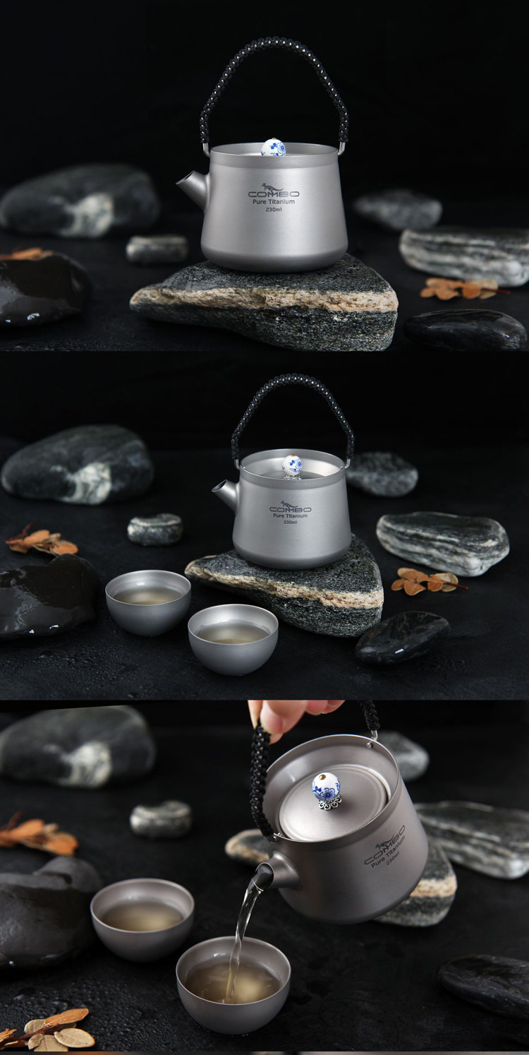 Цвет: Чайник из чистого титана + сумка для хранения, Чайник + две чашки чая + сумка для хранения кожаная коробка комплект